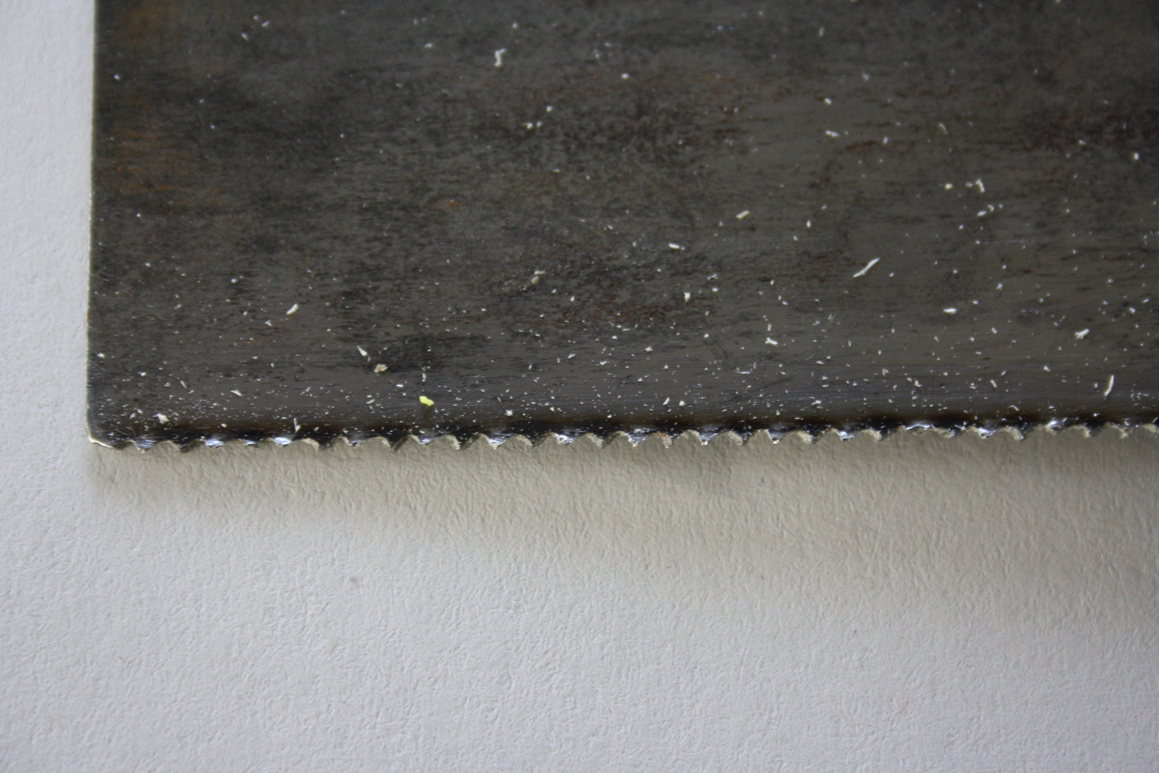 We discussed the possibility of sharpening some of the grotty old saws which are available for the use of my pupils. On closer examination, I think half of them are hardpoints (the ones with the black plastic handles in the photos), and the other half (with wooden handles) may be possible to sharpen: the question is, of course, whether they are likely to be worth sharpening. I don't know whether you can see anything from the photos, but I would value your opinion if you can. I have ordered some saw sharpening files from Axminster today, and will have a go anyway.