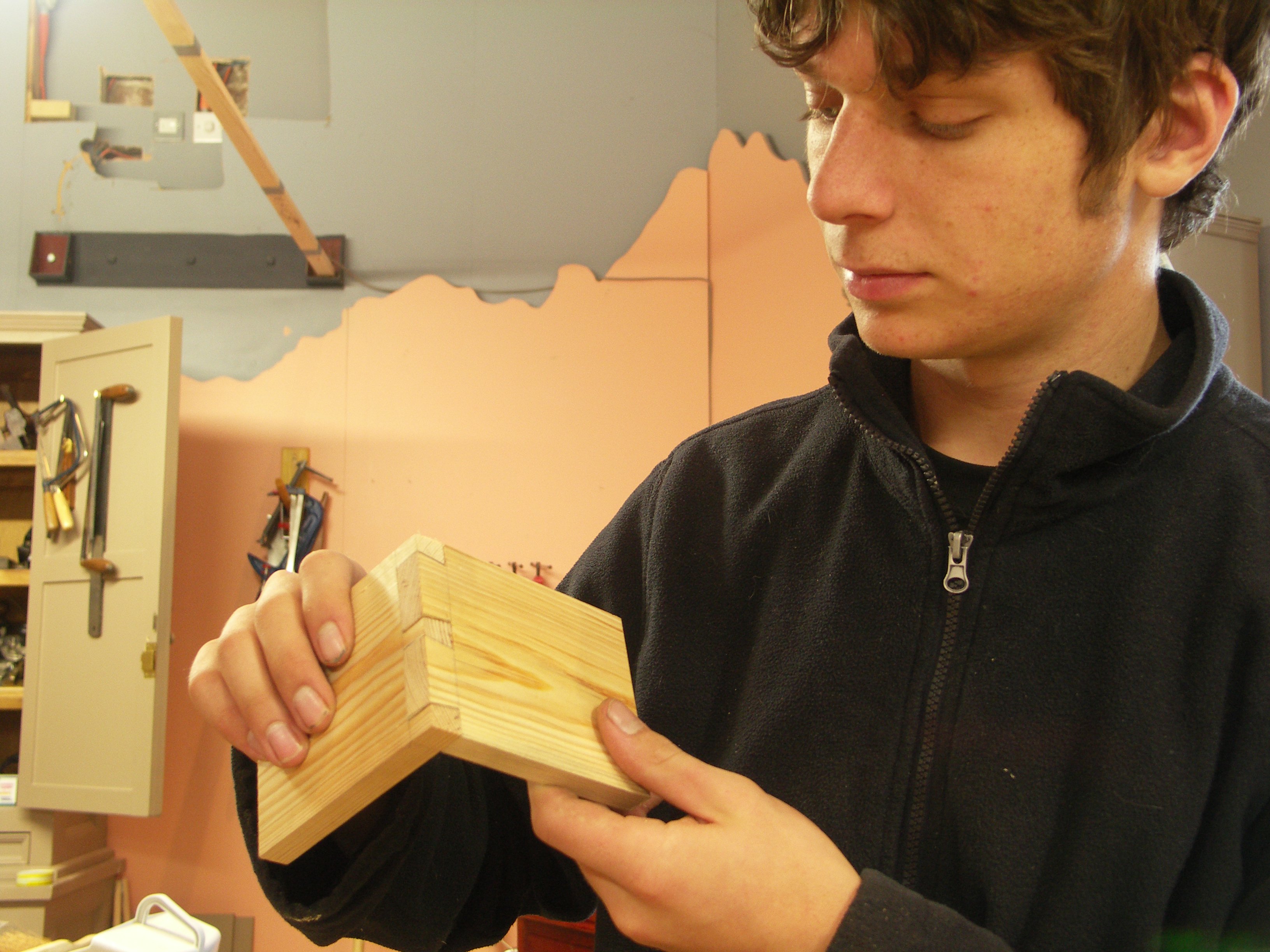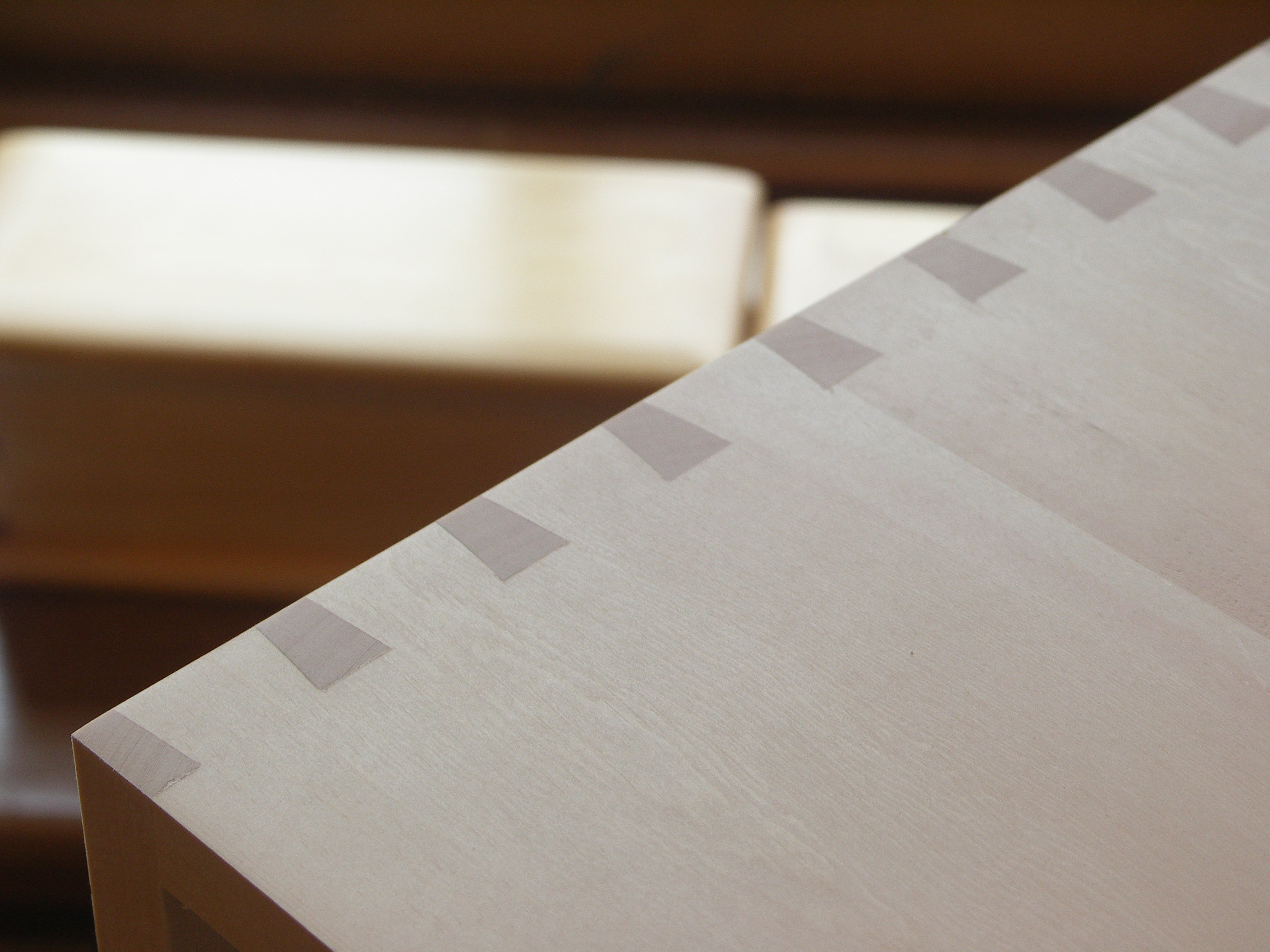 John's making a dovetailed box and his joints came out really well, almost perfect. One of the things that has struck me over the past 25 years of teaching apprentices and students around the world is how much significance they see in making dovetails. This joint is actually one of the simplest of all joints to make, but looks more complicated than it really is. Here at the hand tool school we focus on the essentials that make this work and within an hour's instruction most people achieve good results.
