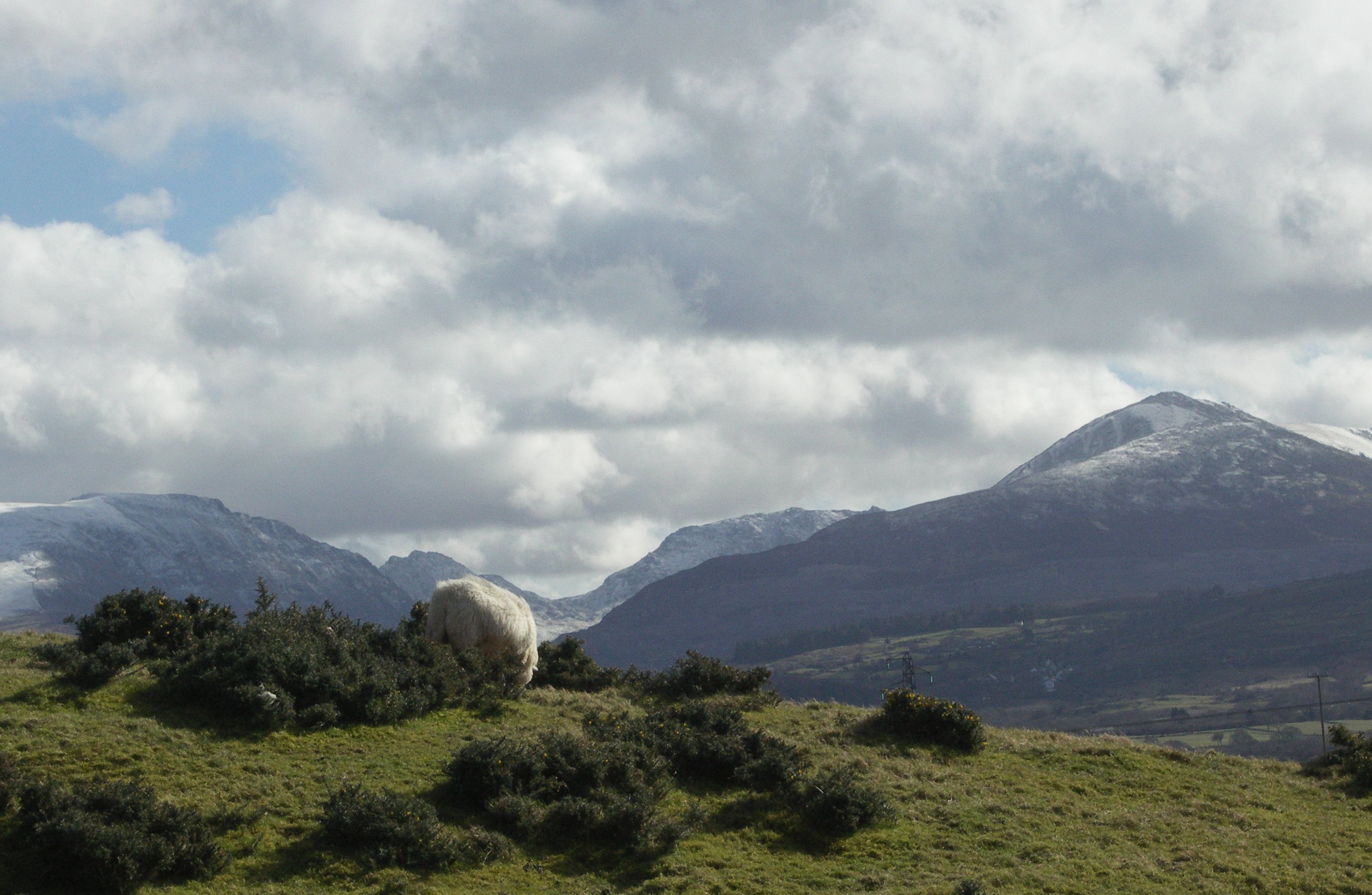 I unloaded the van at the Penrhyn Castle workshops this morning and then rested by taking a ride in the crisp cleanness of Anglesey and Snowdon. Winding along the Welsh roads I was struck by the brightness as I drove to return the van to the hire company. Snowdonia with it's light frosting of freshly laid snow on one side and the deep blue of the Menai Straits on the other. Newly born lambs are in every field now and as I stop to take photographs "I say to myself, what a wonderful world."