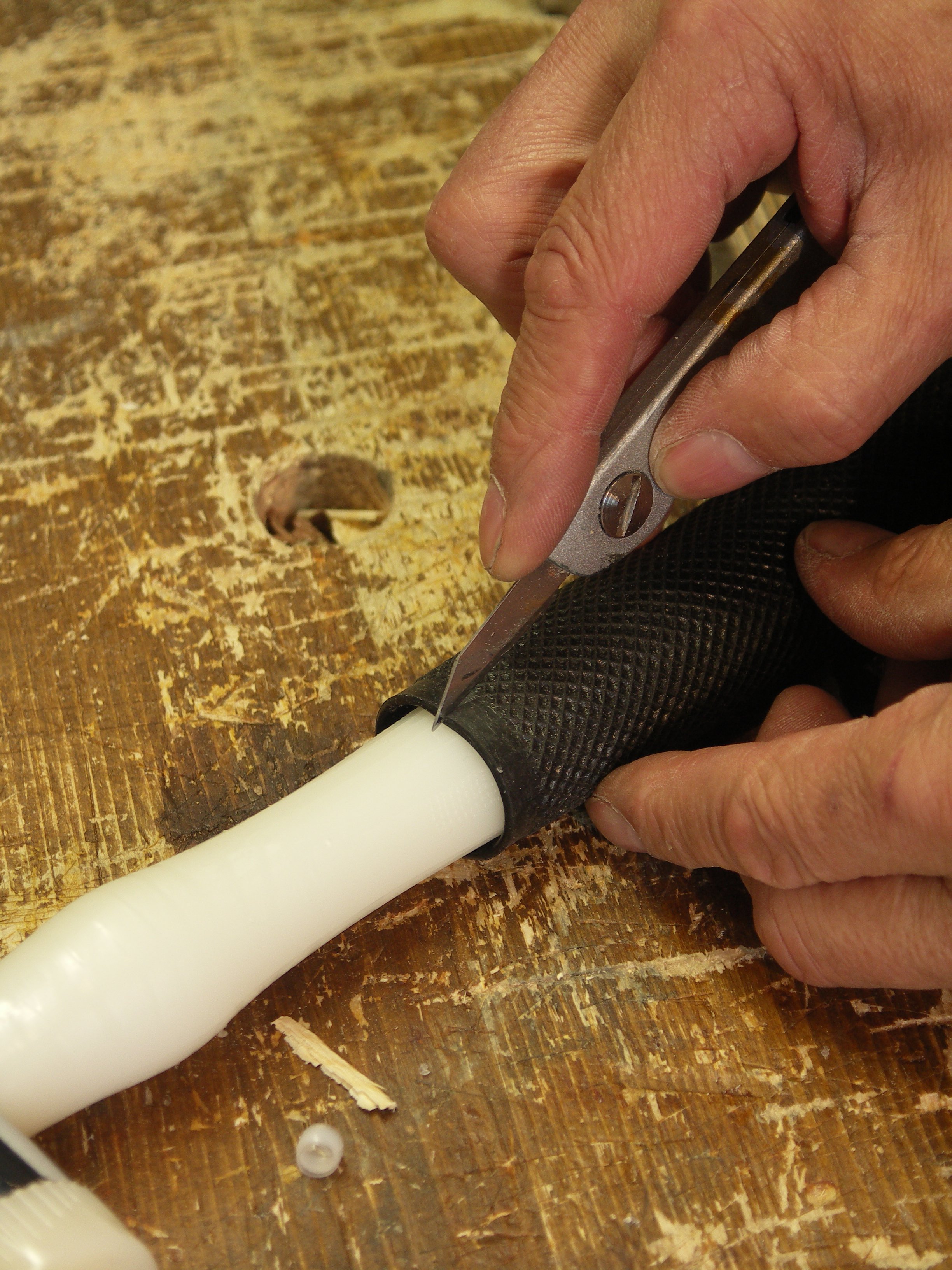 I used a coarse rasp to roughen the surface and create a sort of checkering pattern until it felt right in my hand.