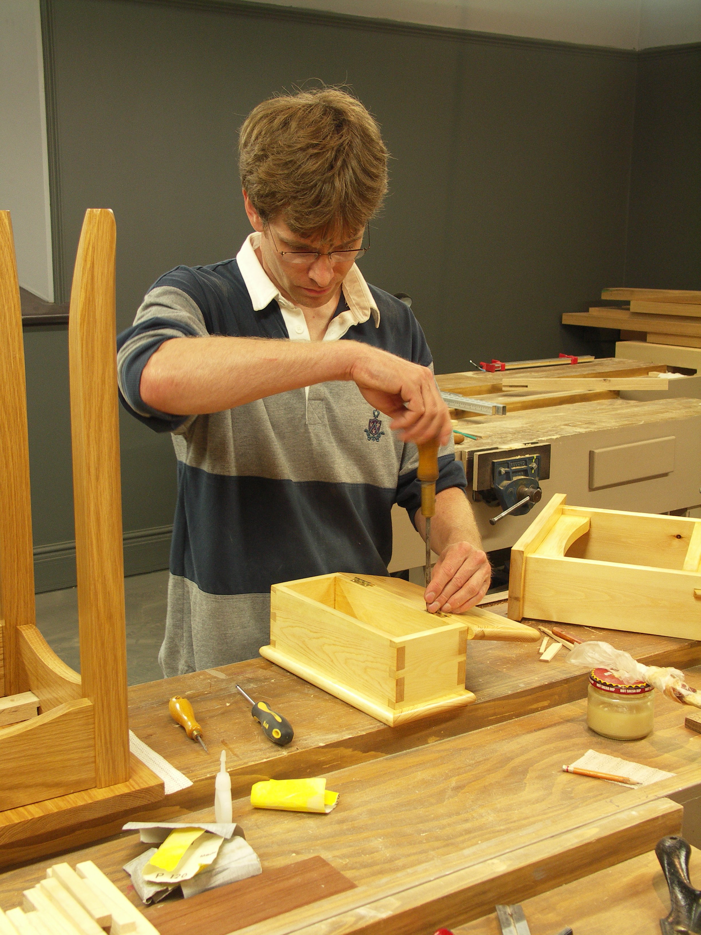 John came back from his trip to Southport yesterday and settled in to restoring one of his handsaws and Jonathan, one of last weeks students, came in to finish all of his projects before he returns to London. His work was quite remarkable and we had a great time working together through the day. Here are this weeks projects.