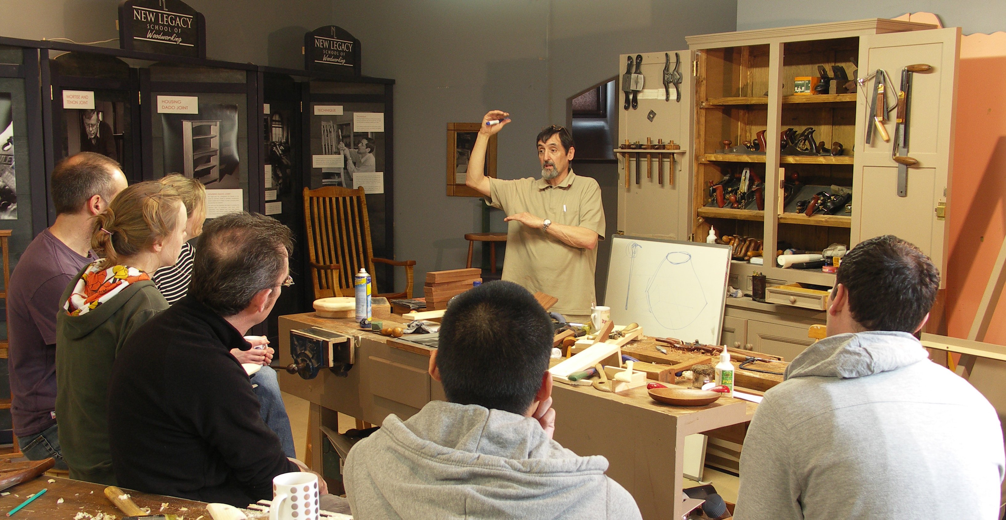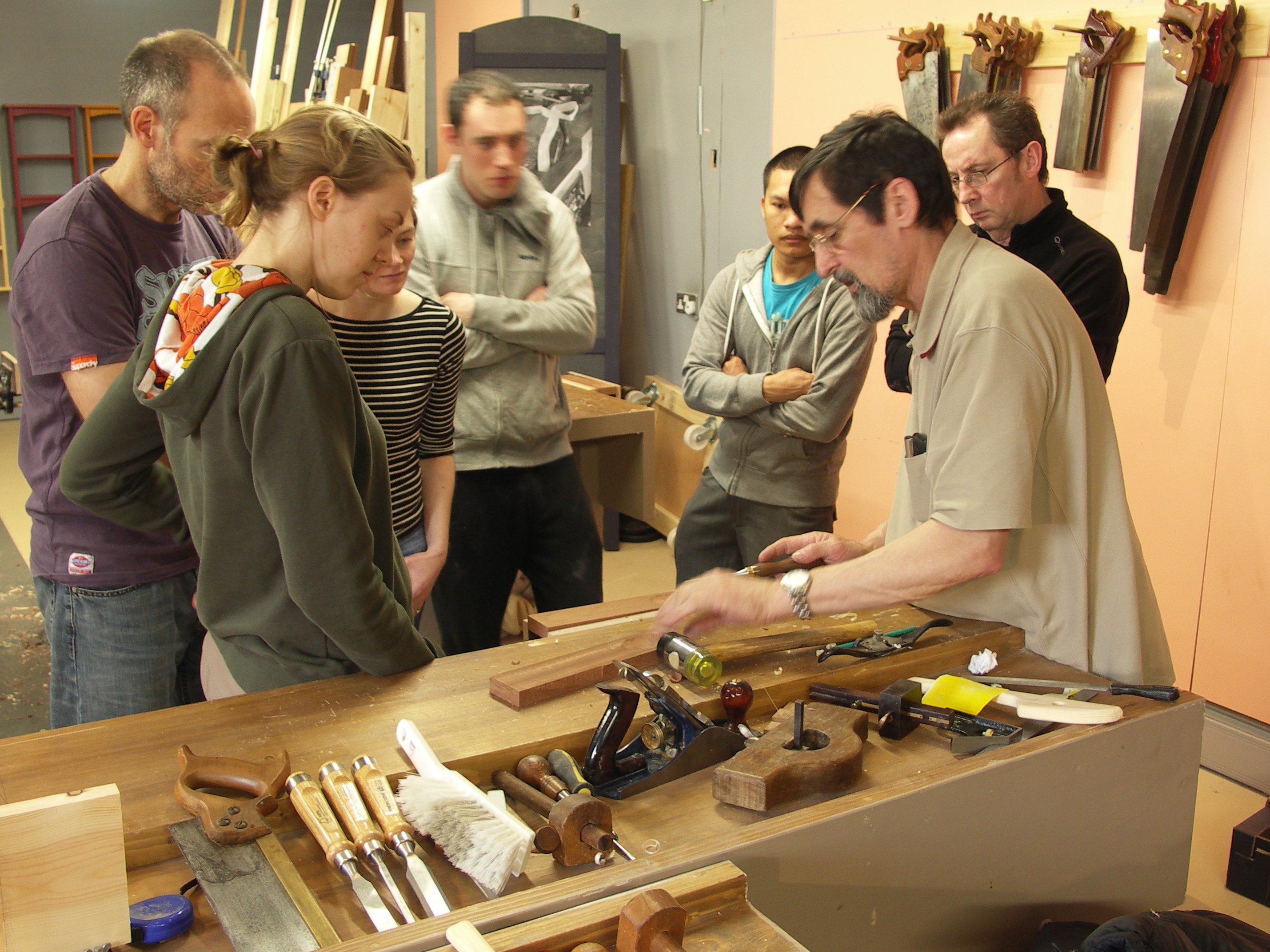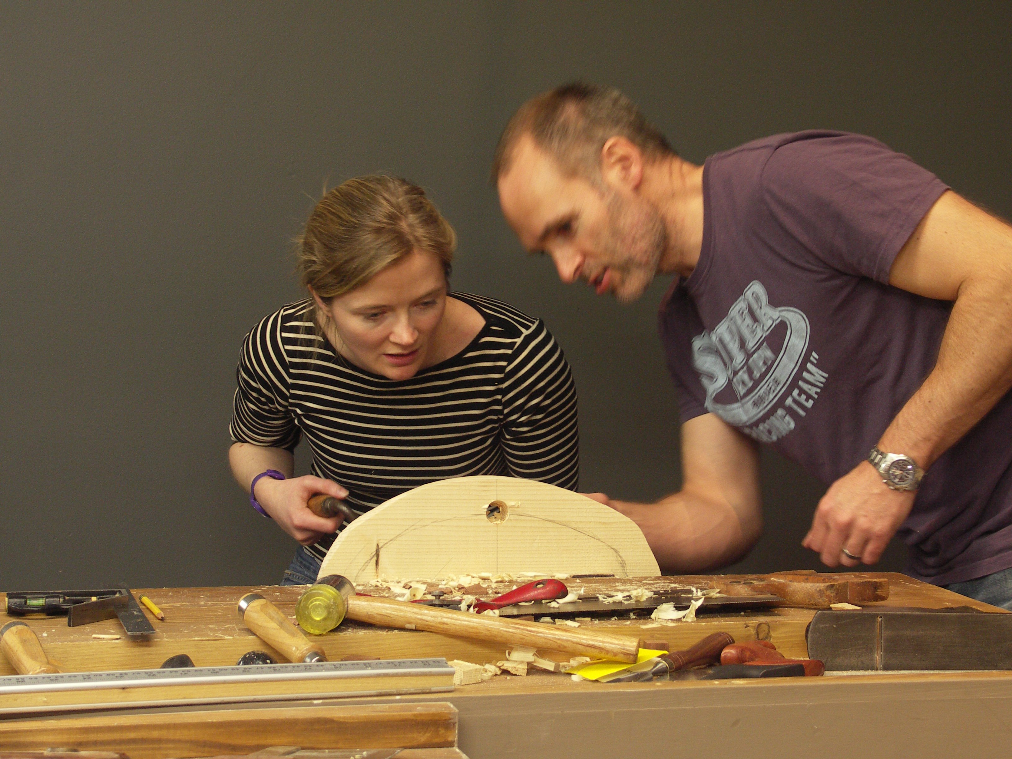 It takes confidence to land a plane on the wood and use it effectively and it’s not just a question of toughing it out or muscling it through. You can’t manufacture confidence and you can’t have it without some degree of experience. After two days the waste bin was full of shavings, chunks and chips that came from the cutting edges of 8 chisels, 8 gouges, 8 planes and 8 spokeshaves working fulltime over two days. Whereas gauging success by created work has obvious benefits, I don't think many would consider the shavings covering the floor signs of success.