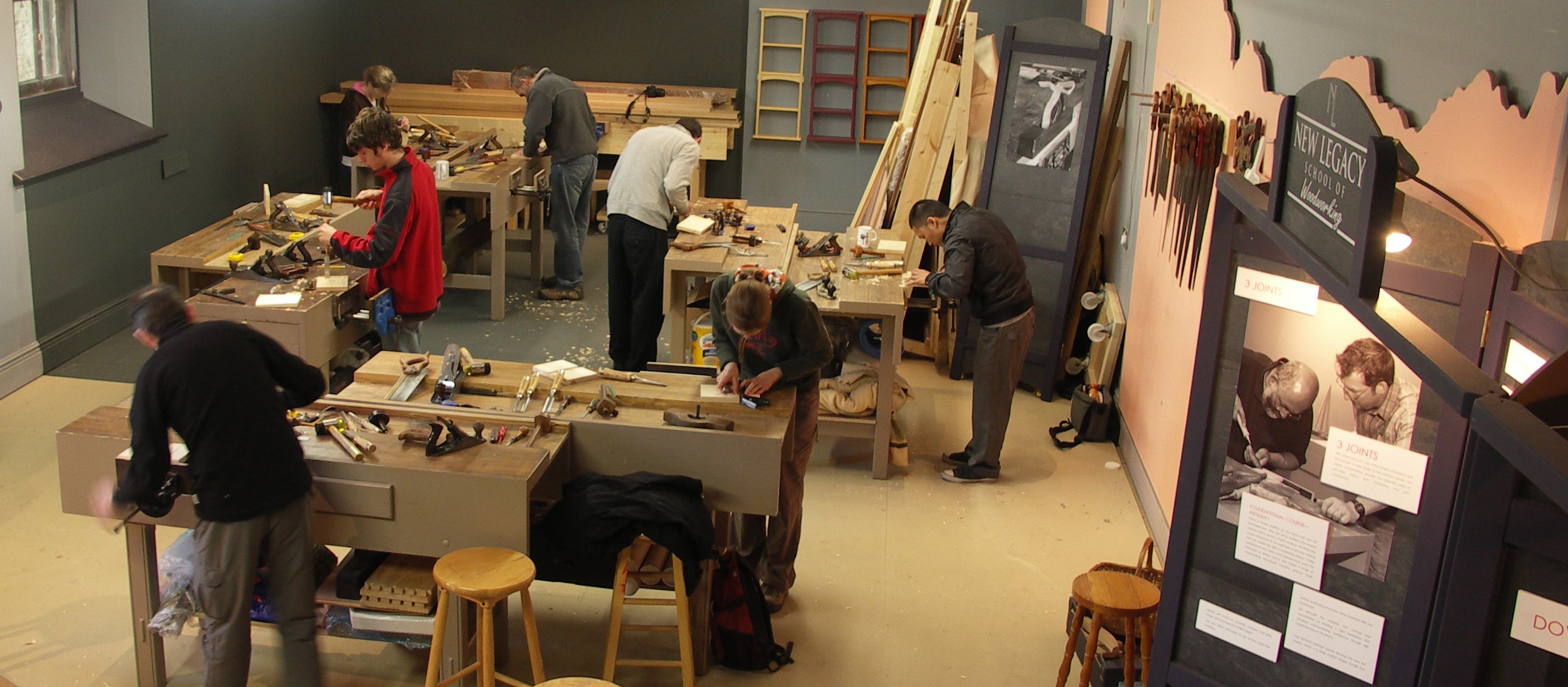 We discovered the first one of the essential three joints they will be making today and that means they can start thinking bookshelves and other case goods. Making their first housing dado with surgically sharp edge tools and saws is a first, but making truly accurate joints that fit using no machines is truly freeing! This is the bookshelf joint, which has many other applications too—from toddle trucks to tool totes and cantilevered drawer backs to display shelves.