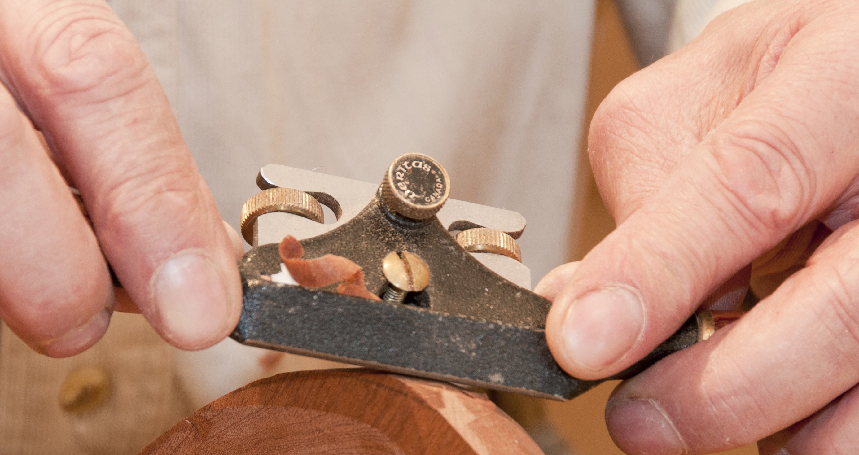 This is the Veritas spokeshave I use for much of my work too. I can recommend this tool to anyone. In many ways it reminds me of the Norris planes for some reason. Perhaps it's the best spokeshave for really fine work. I haven't really found its equal to be honest, but then again I haven't tried every spokeshave made either. Veritas make a kit to make your own spokeshave too. This is a different type of spokeshave than the one shown here. It has a wooden body that you make from your own wood, and Veritas provides the blade and the adjusters and other equipment to thread the wood and such. These spokeshaves have the blade as the sole like the old spokeshaves do, but have fine adjustment screws. This type equals the old-style traditional spokeshaves in performance in my view. I am sure some will disagree, but that's OK. It takes a day in the workshop to make one and the kits, two sizes, are quite expensive, but you get a lifetime spokeshave so it's not much really for a customized hand made spokeshave is it?