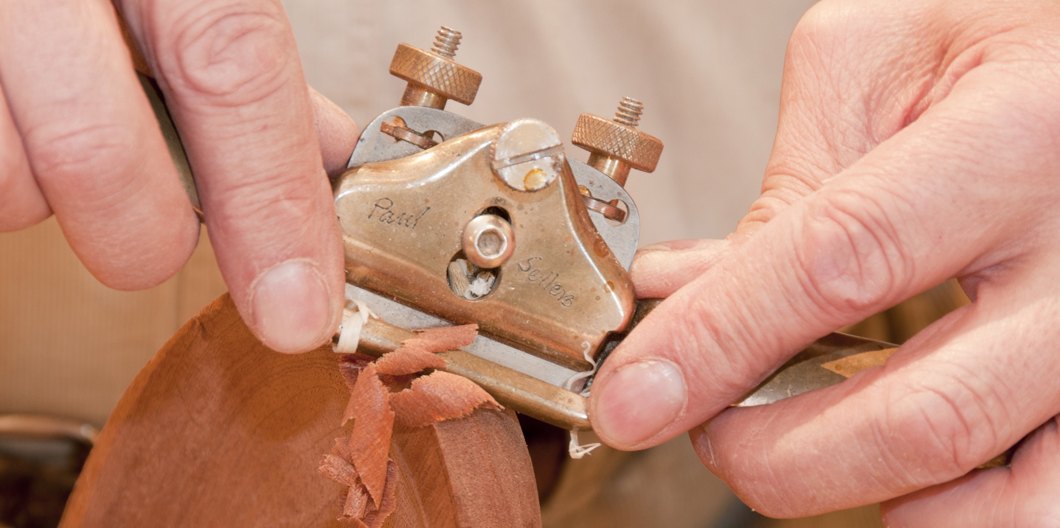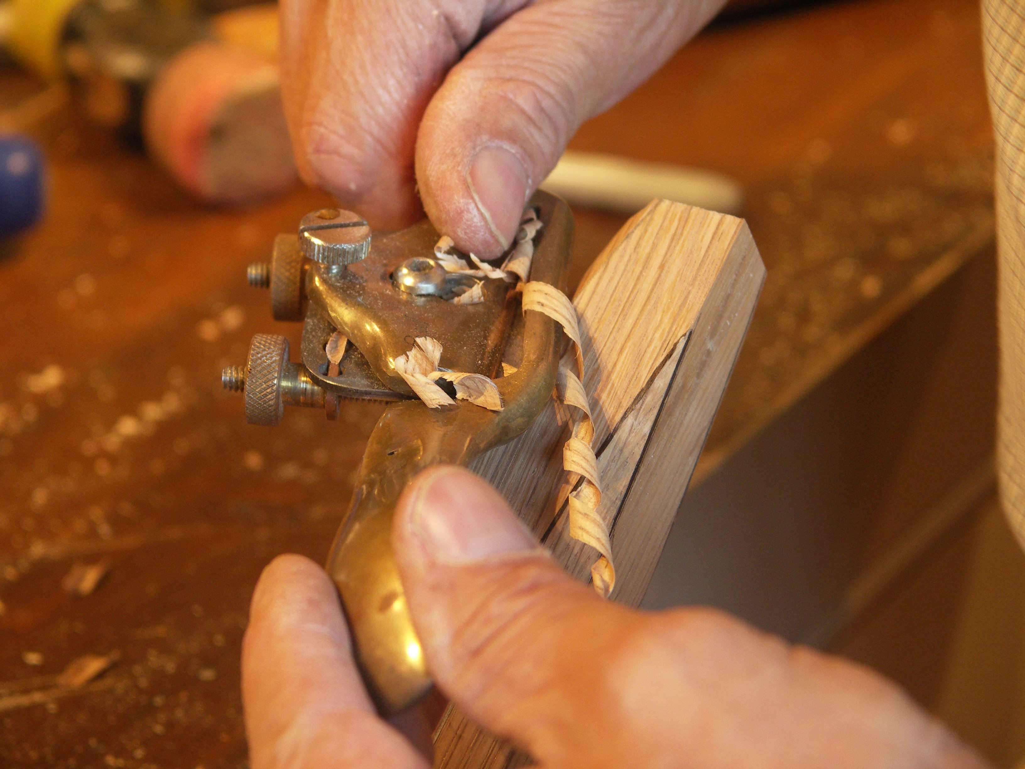 When I was planing the roundover on say a seat bottom, I needed to remove a lot of stock initially, followed by more refined amounts. By angling the blade in relation to the sole, allowing a deeper cut on one side and shallow the other, I never needed to adjust the actual spokeshave but simply move the spokeshave across from the left half of the blade to right side. I've used that method for 46 years. That's how the older model #51 was adjusted. Fast, fast, so fast. Coarse-cut on the left, fine on the right. Now George didn't invent this, it was common practice with wooden spokeshave of old to set one side deep and the other shallow.That was passed on in the #51 and the tradition continues even though the tool has changed to incorporate adjusters. I like the adjustment mechanisms, they are handy of course, but if you ever get to try a good, well-set and sharpened boxwood spokeshave, you will realise that 300 years ago, craftsmen knew what they were doing too.