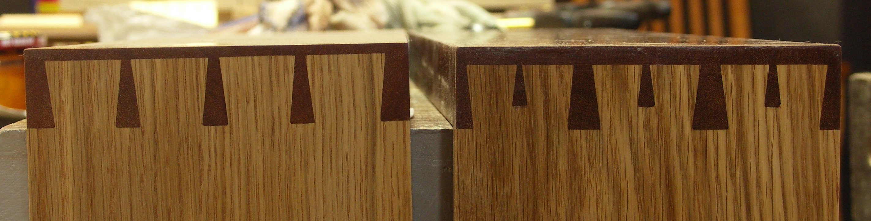 I like the less showy and less stark contrast of oak with mahogany rather than the whiteness of maple and especially the showy figured maple. Again, the very appearance of this joint may be bit intimidating but if you have made a regular half lap dovetail. this just expands the concept of dovetailing a little that's all.