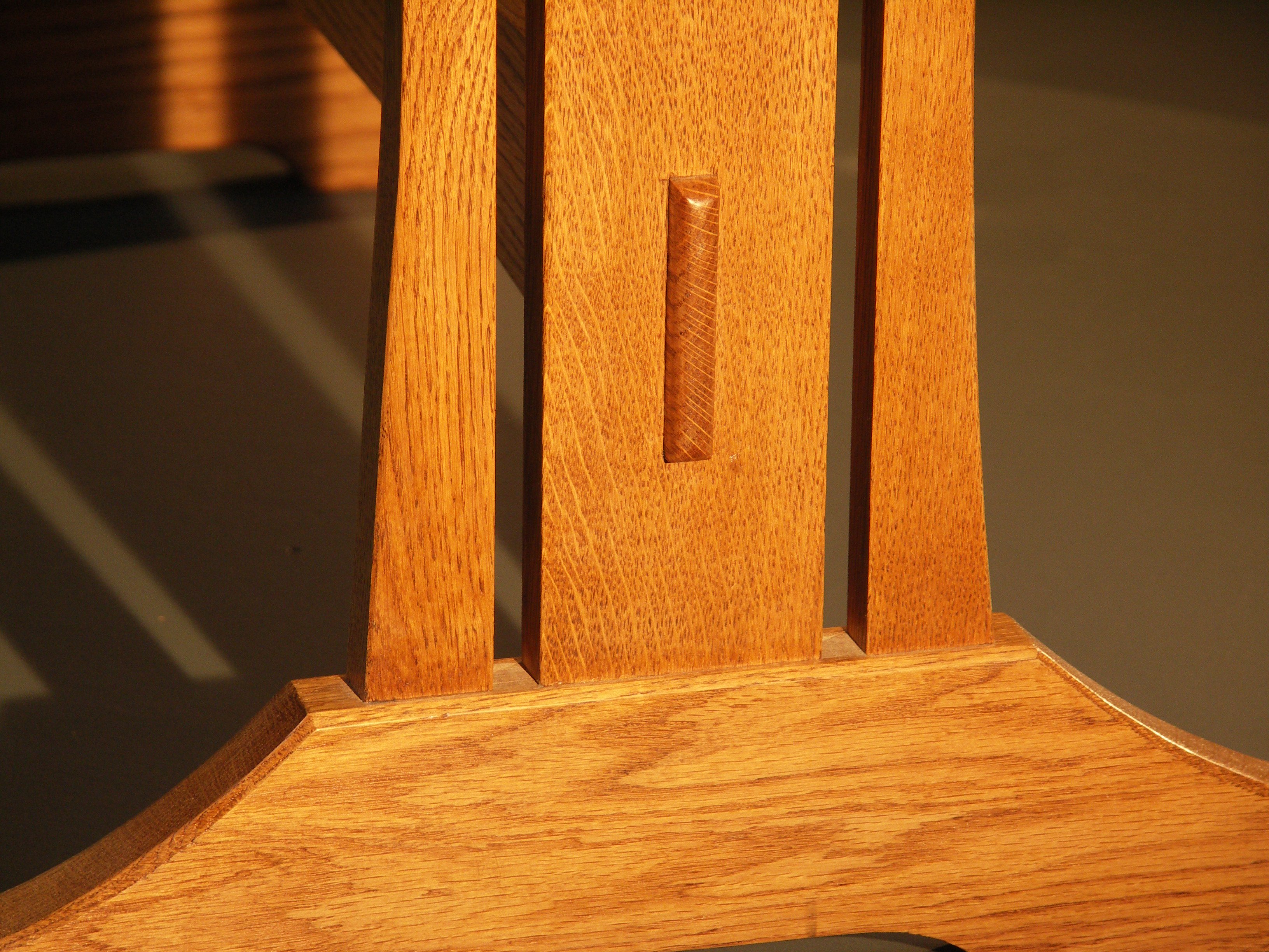 Red oak is less stable than its country cousin the white oak and many reject it for furniture making because of its coarse texture (open pores). That said, it is a primary source of furniture wood and should not be disregarded at all. I like to finish the wood with shellac or waterborne finish and then fill these open pores with a dark furniture wax polish. I designed this for the hand tool school. It's project for students to make on the more advanced woodworking courses.