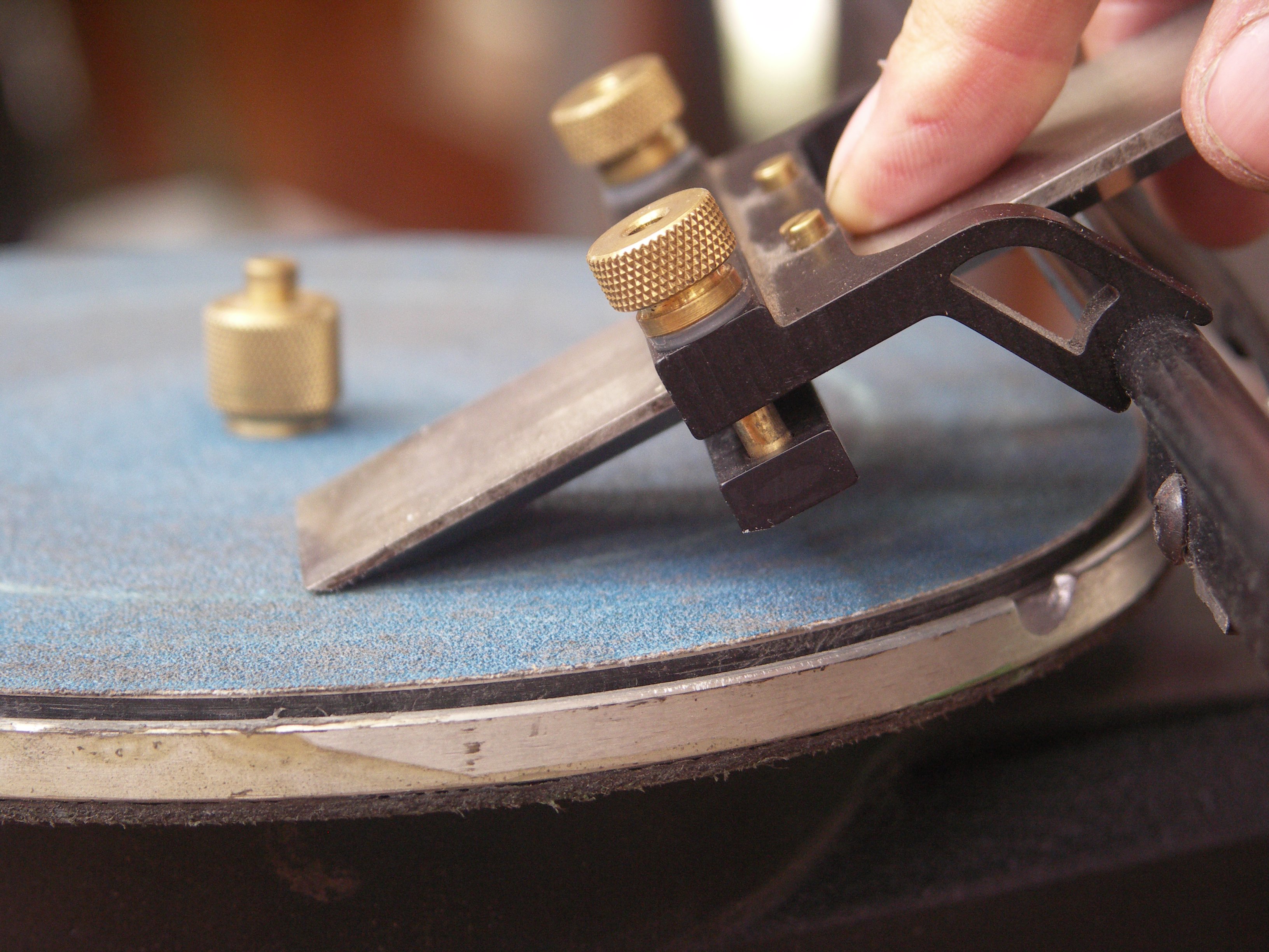 I grind the bevel on a mechanical grinder for the first and last time.