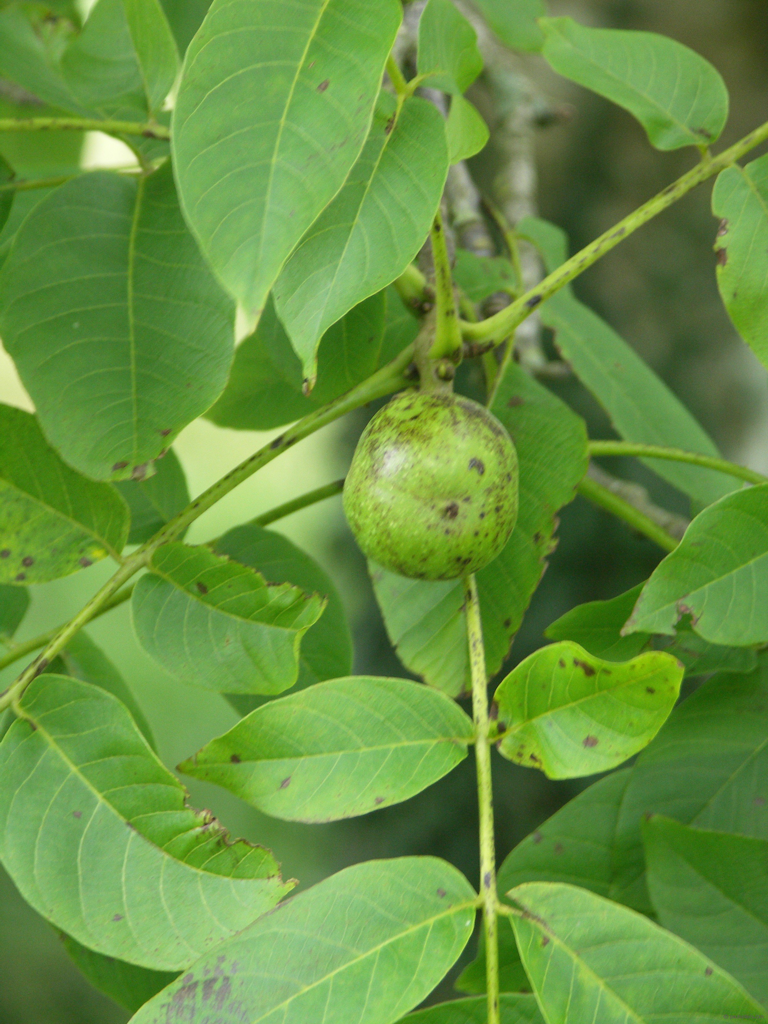 Here's a walnut on one of the walnut trees not far from my workshop at Penrhyn Castle; in the grounds. Of course like many nuts, the nut casing looks like a chestnut outer, but the casings hide very different content between the nuts inside. But I like the colour of the leaves and the casing. I also like the leaf shape.