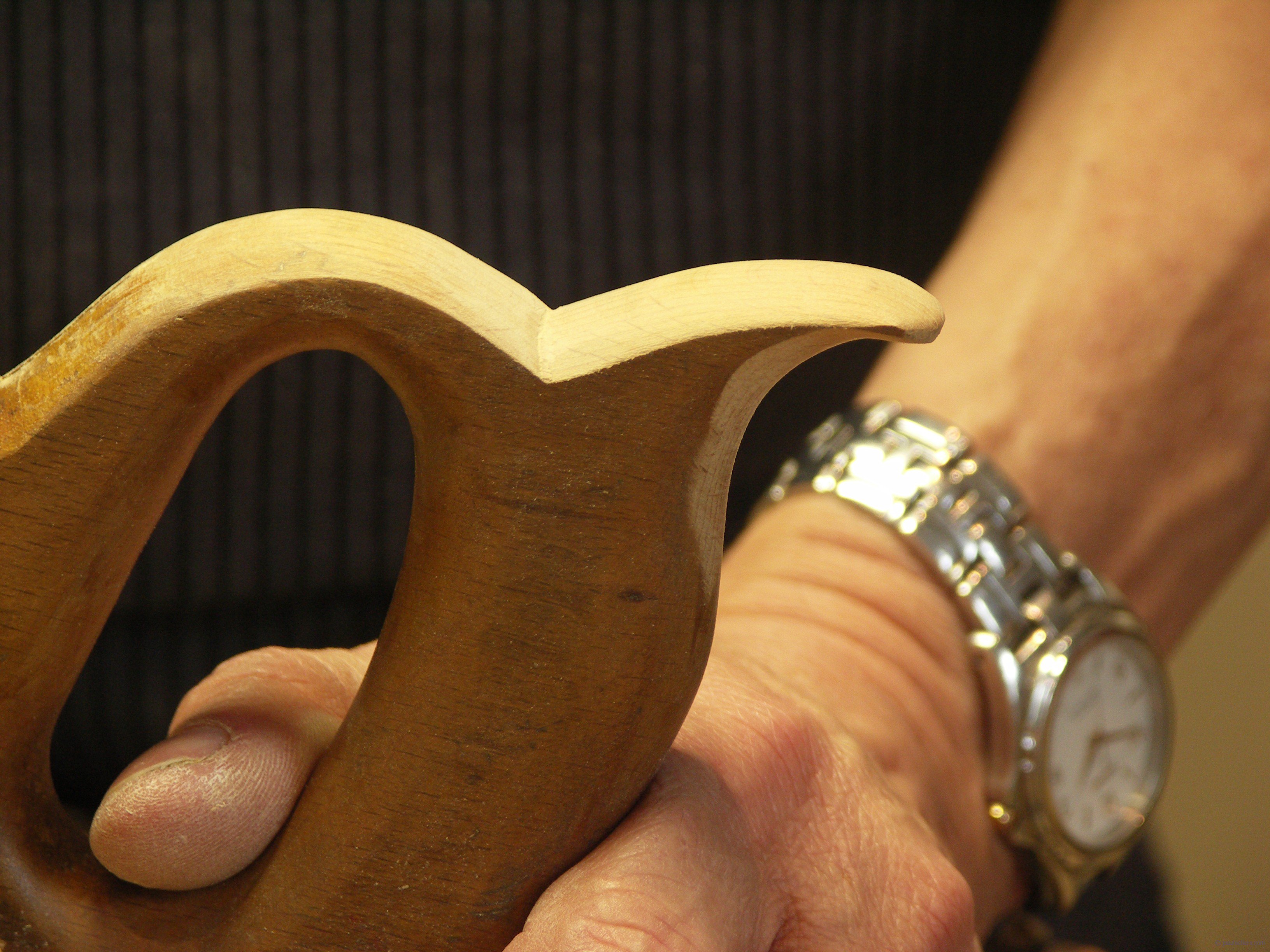 I use the saw across the grain to shape the underside of the handle as I did for the underside of the handle yesterday.