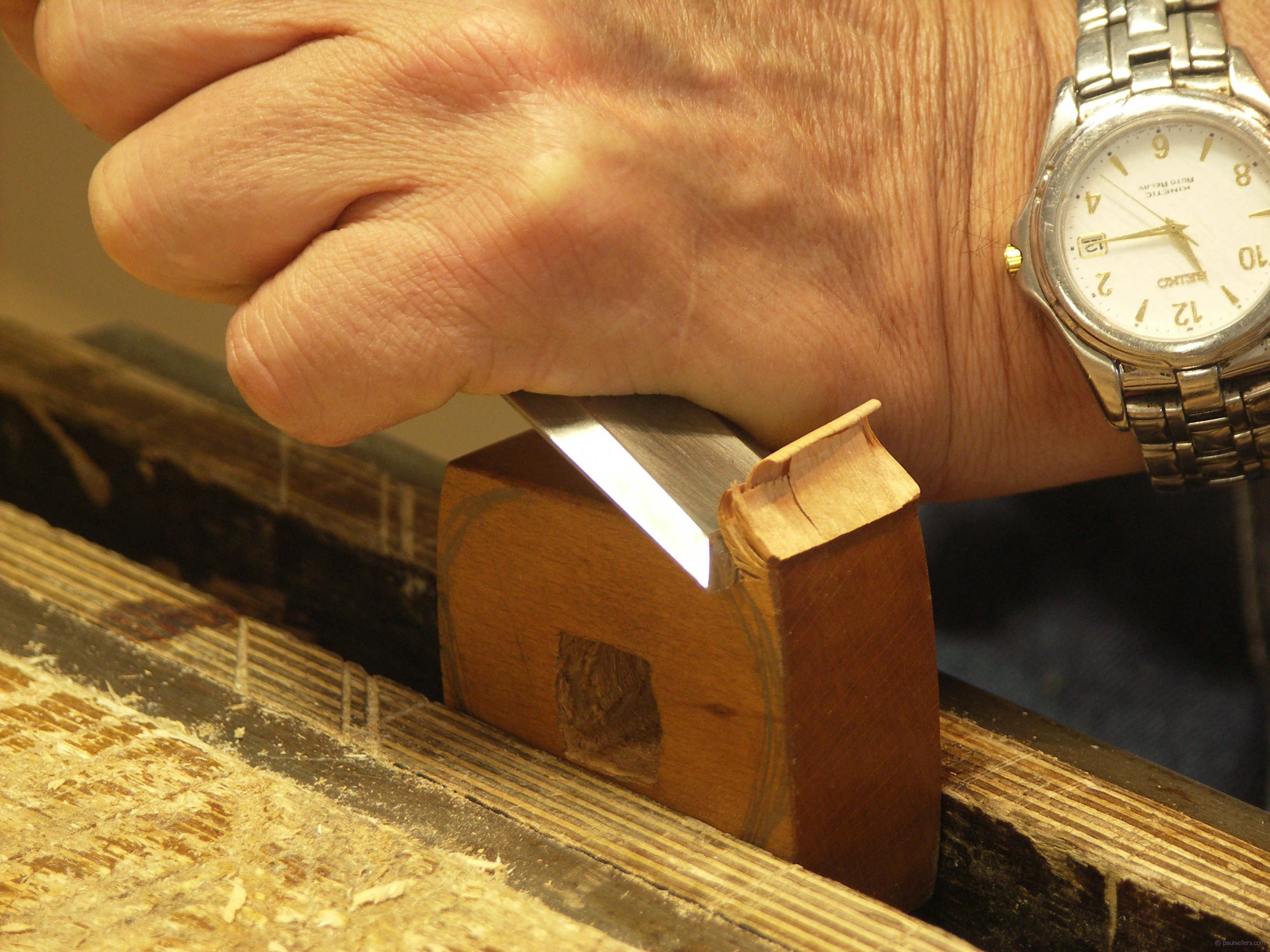 Use the 1" chisel to chisel down to the line with the bevel of the chisel uppermost. It's best to use a mallet to drive the chisel. You may also want to use the coping saw too.