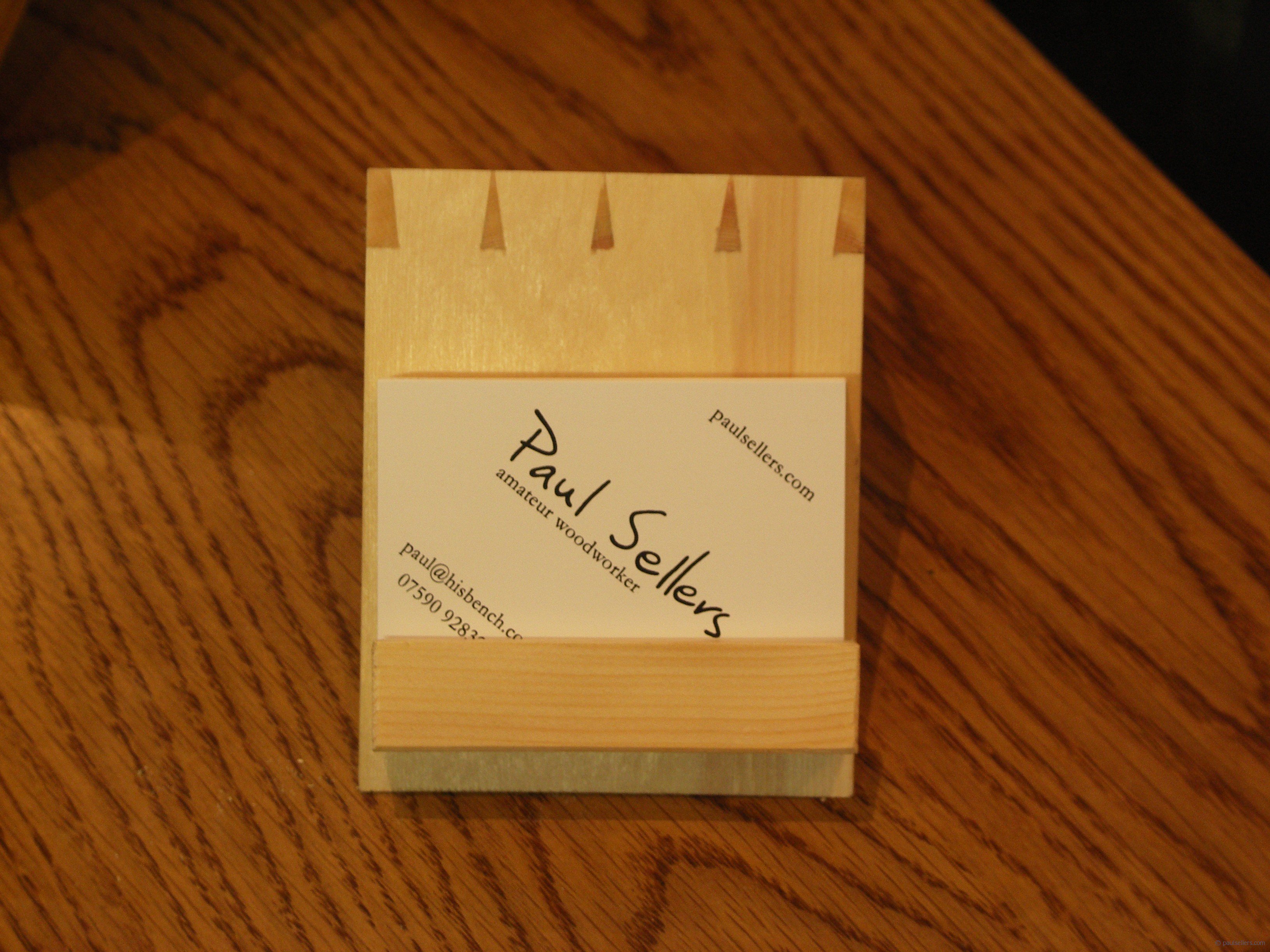Business cards in clear plastic holders for woodworkers don't really measure up. People come in the Penrhyn castle workshops and say, "Are these dovetails cut by machine?" Aargh!!!