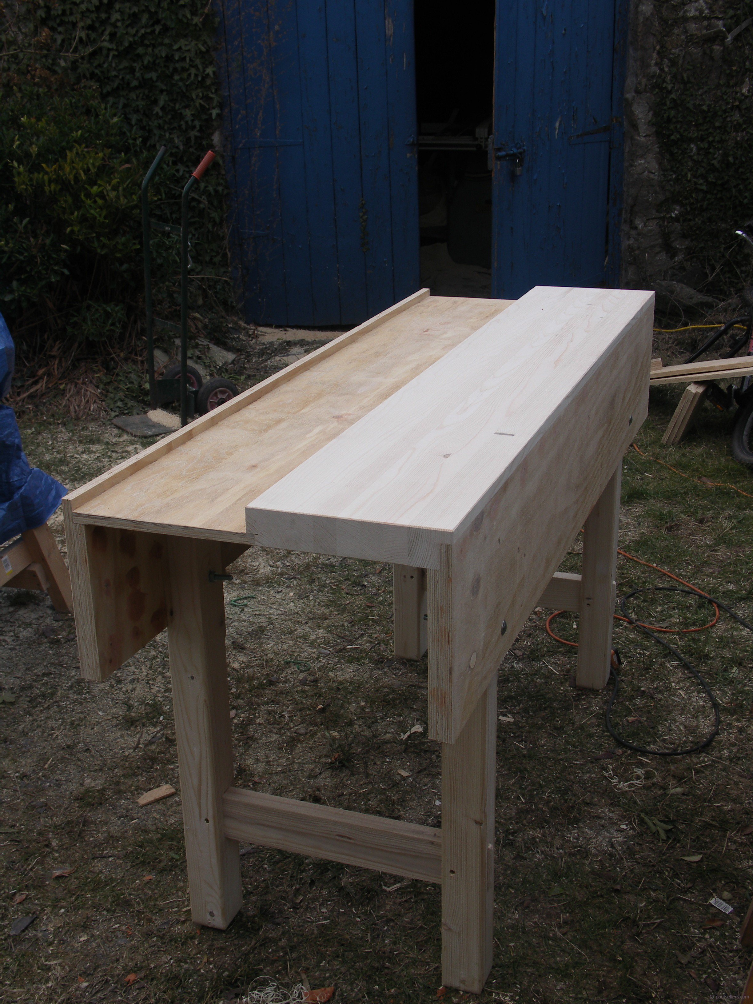 The leg frames came from 4x2s (US 2x4s). Every day I worked in the cold and fought against the rain.