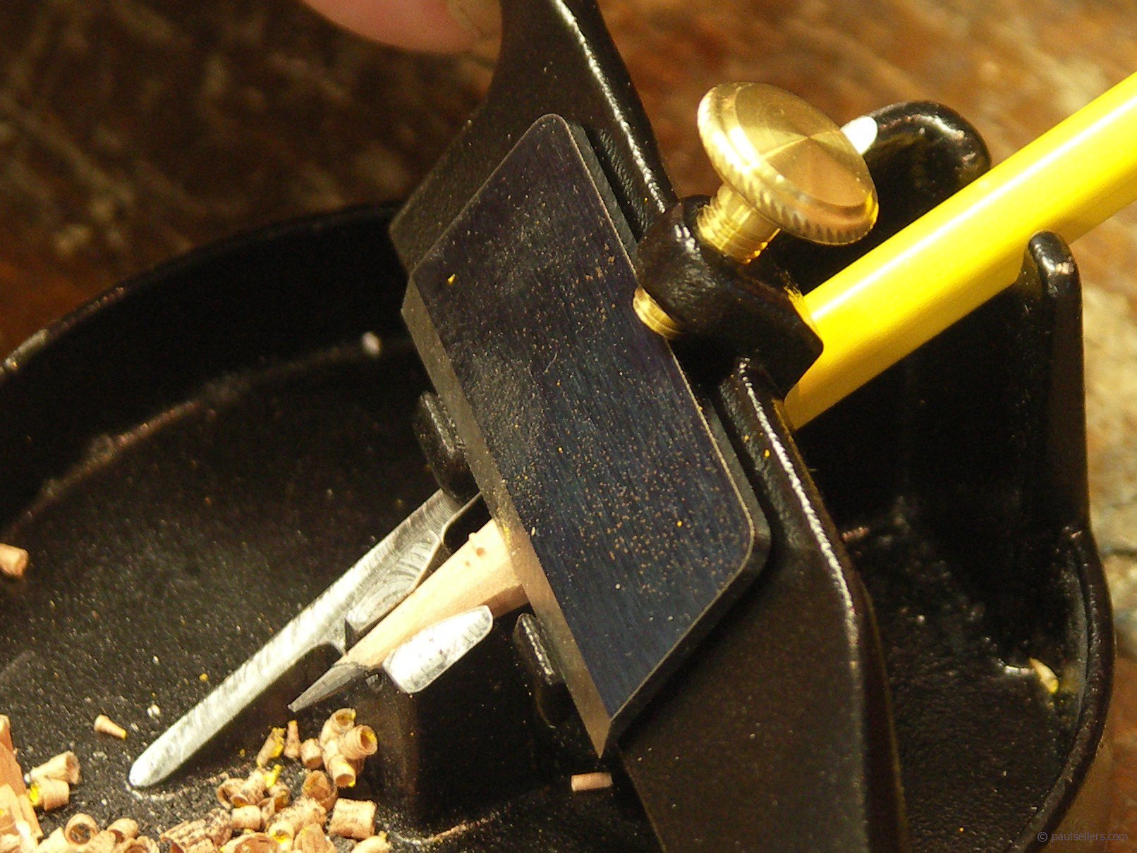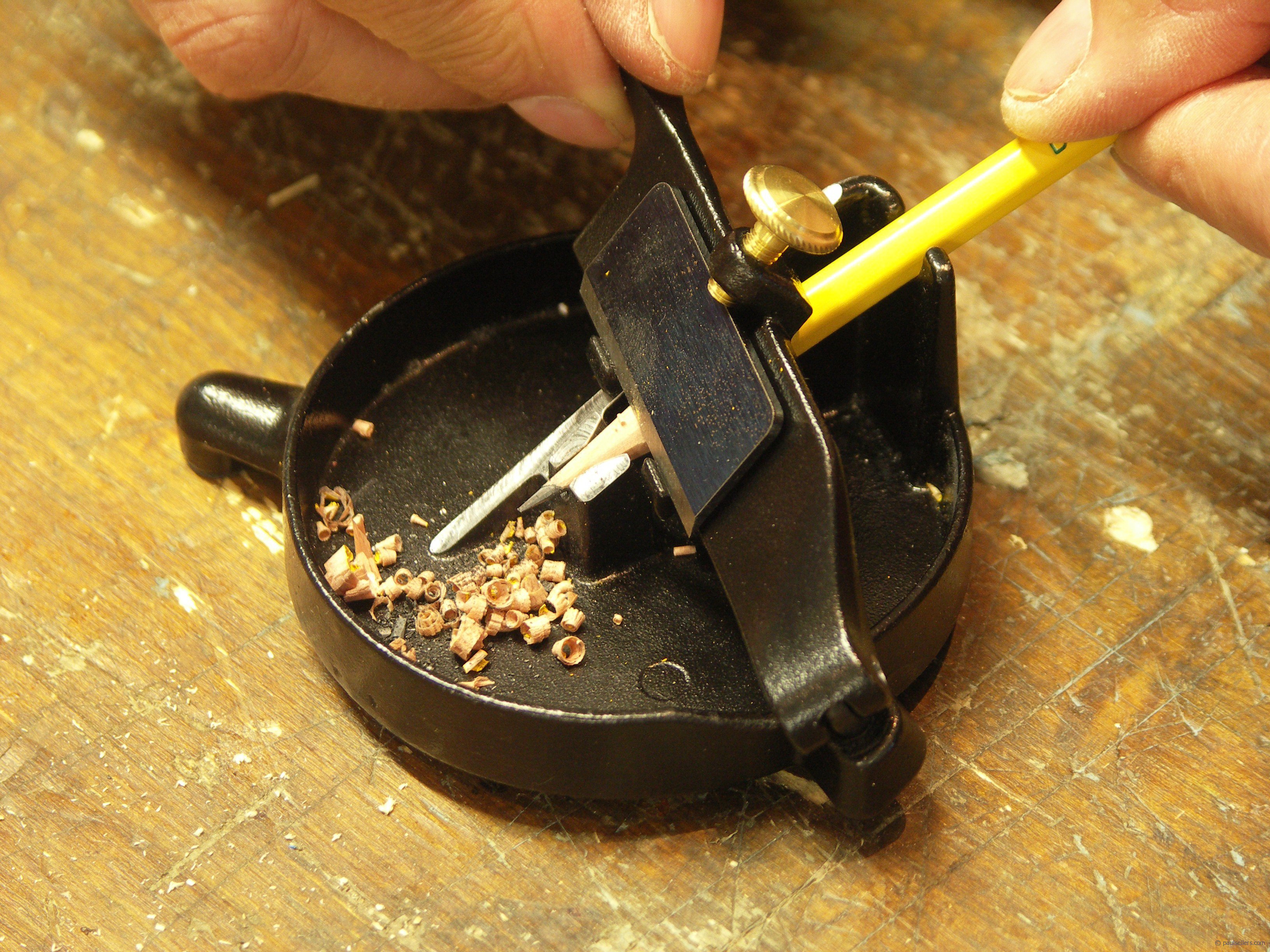 I never thought about an alternative pencil sharpener to my 1” chisel or even to what has become a conventional rotary pencil sharpener. I demand superfine long points for my layout work and truly fine lines. I was with Robin Lee at Veritas recently and he introduced me to a wonderful tool developed in the USA in 1905. As with all things, Veritas improved features to create the better mousetrap and this sharpener gets right to the point.