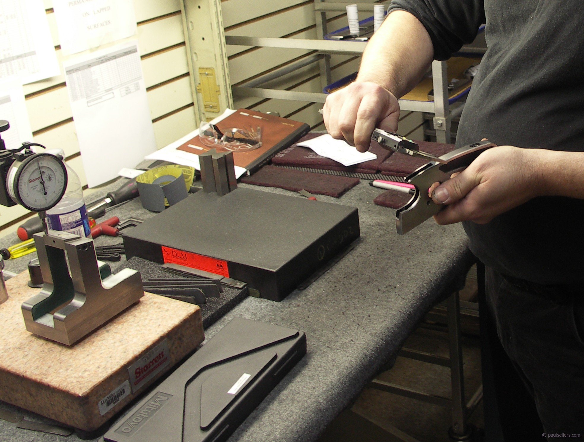 Here is the final check for perpendicular, squareness to the face etc. He checks for thickness of various parts and flaws.