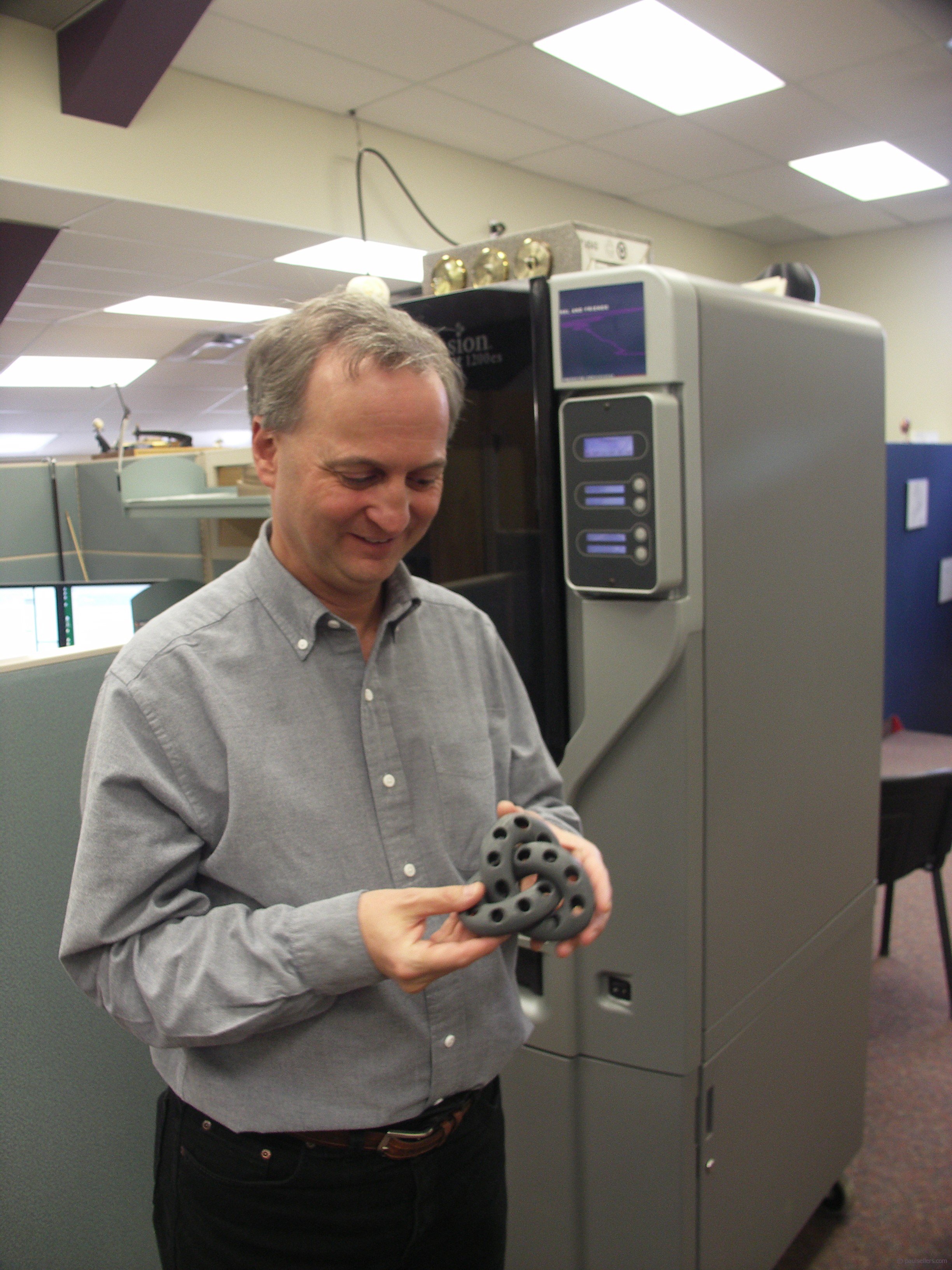 This is Rick standing in front of a machine that creates prototype components from plastic. This takes an idea from concept to create the physical three-dimensional representation so parts can be fitted together and handled.