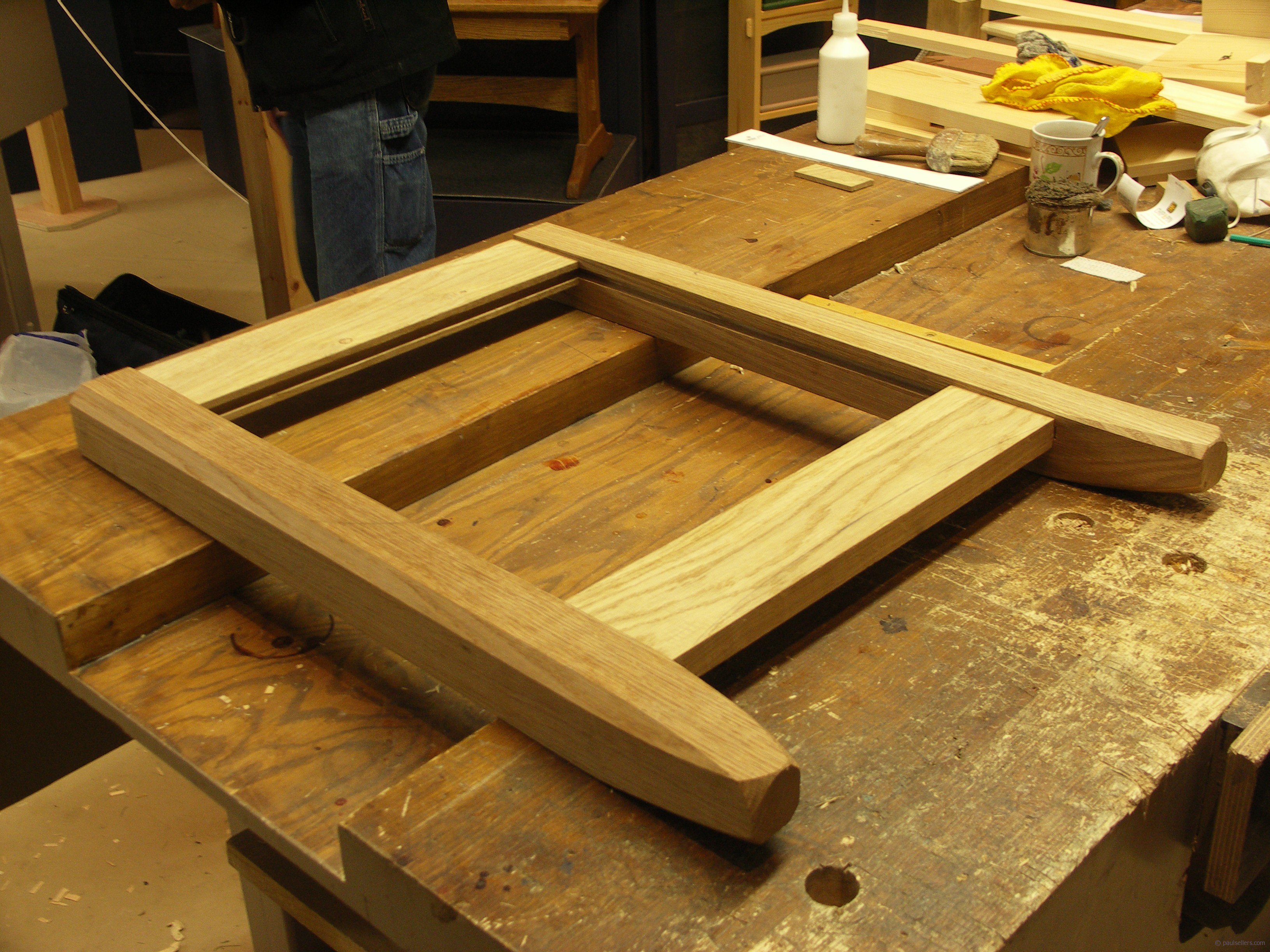 Here is some of my own work today. I made the first completed leg-rail frame for my Hope Chest. The joints are tight and well fitted and they are made with hand tools only. This reinstitutes the distinct and balanced approach to woodworking that was once common to all woodworkers.