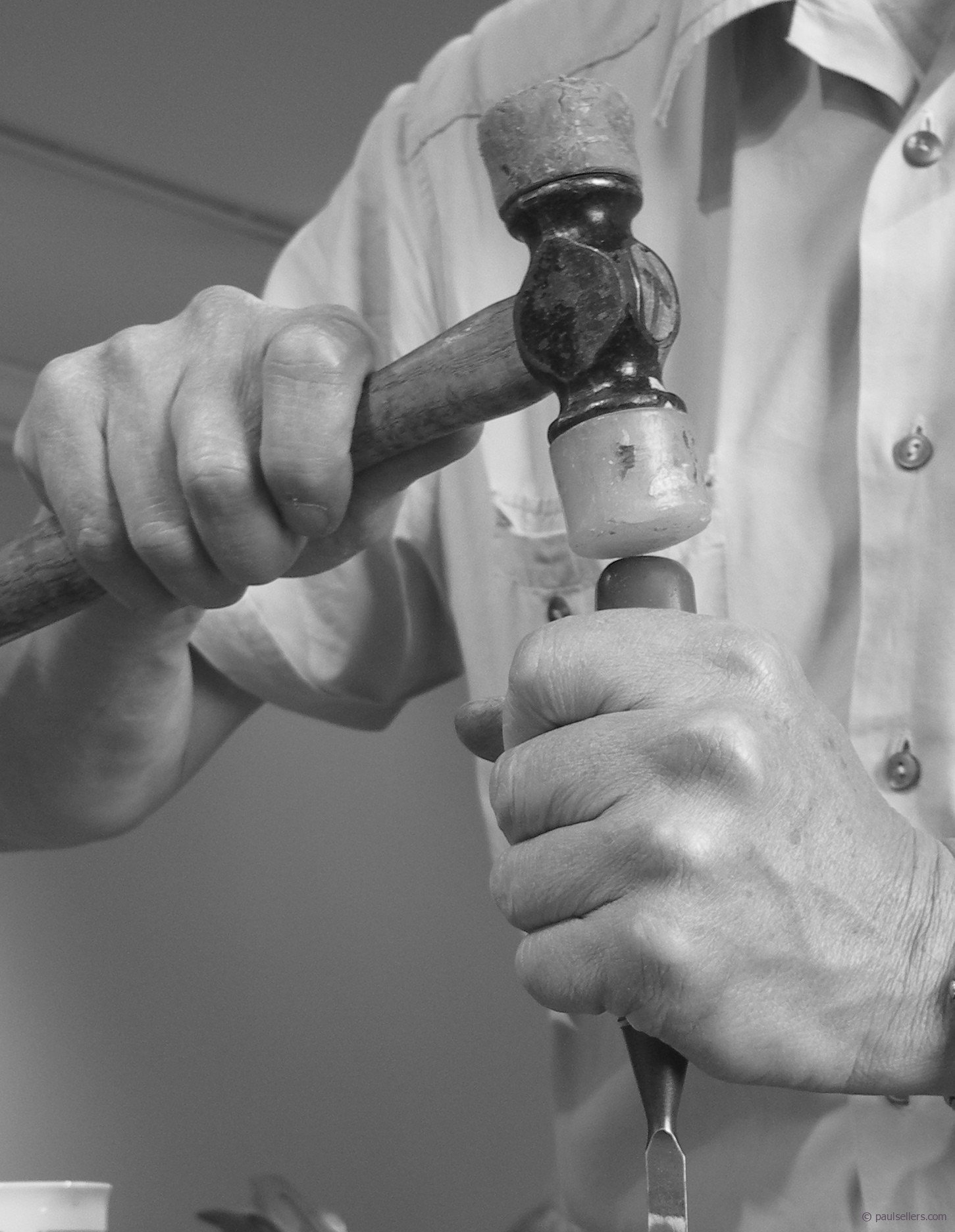 The hand takes the chisel, unites with the wood, the hammer strikes and the wood splits the waste from the wanted. The hammer withdraws, strikes again and more wood separates from what must remain to form the tenon and tail, the mortise and the housing. My hand twists, turns, twists more as the wood rejects the chisel and rebels the course I set, but firmness demands exactness and the hand cannot betray.