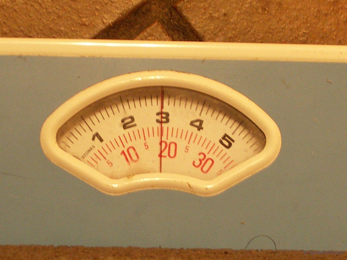 This shows the scaled weight of the cinder block. For the uninitiated, the number 3 equals 3 stones: A stone equals 14 lbs, hence 42 lbs.