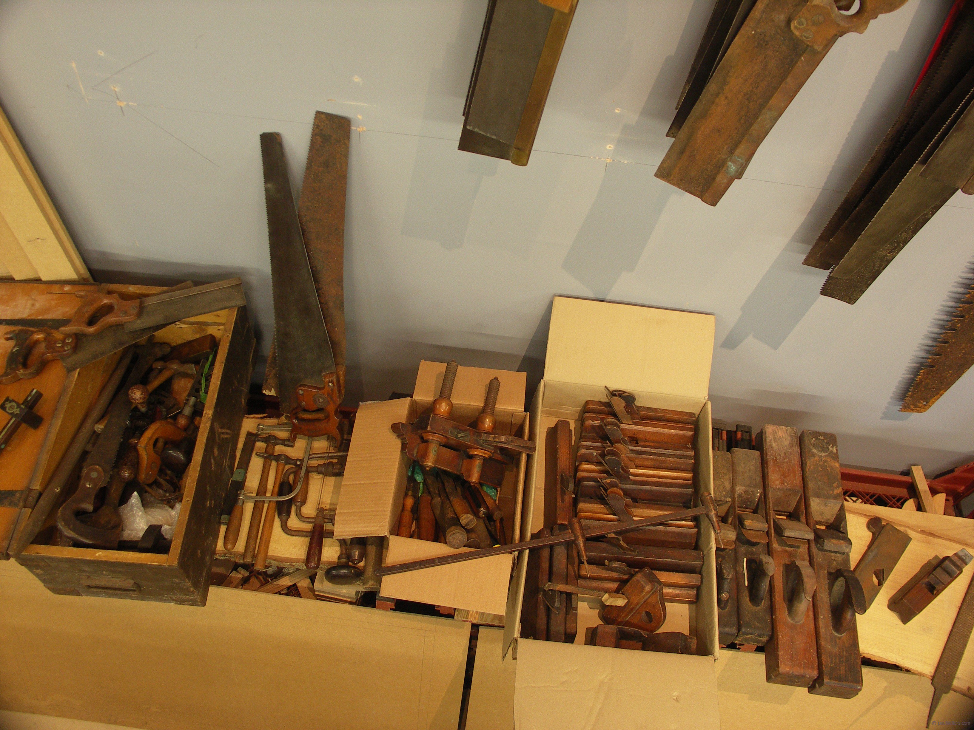 Some weeks ago a couple came by the New Legacy workshop here at Penrhyn Castle and we chatted for a while about woodworking, training the next generation and so on and so forth. As Terry and Judy were leaving they asked if I would be able to use some old hand tools and of course you know my answer. Well, we arranged to meet the day I was leaving for the North of England Woodworking Show and these are the tools they brought. Lots to look at, clean up and make ready for use/display in the shop and share with others.