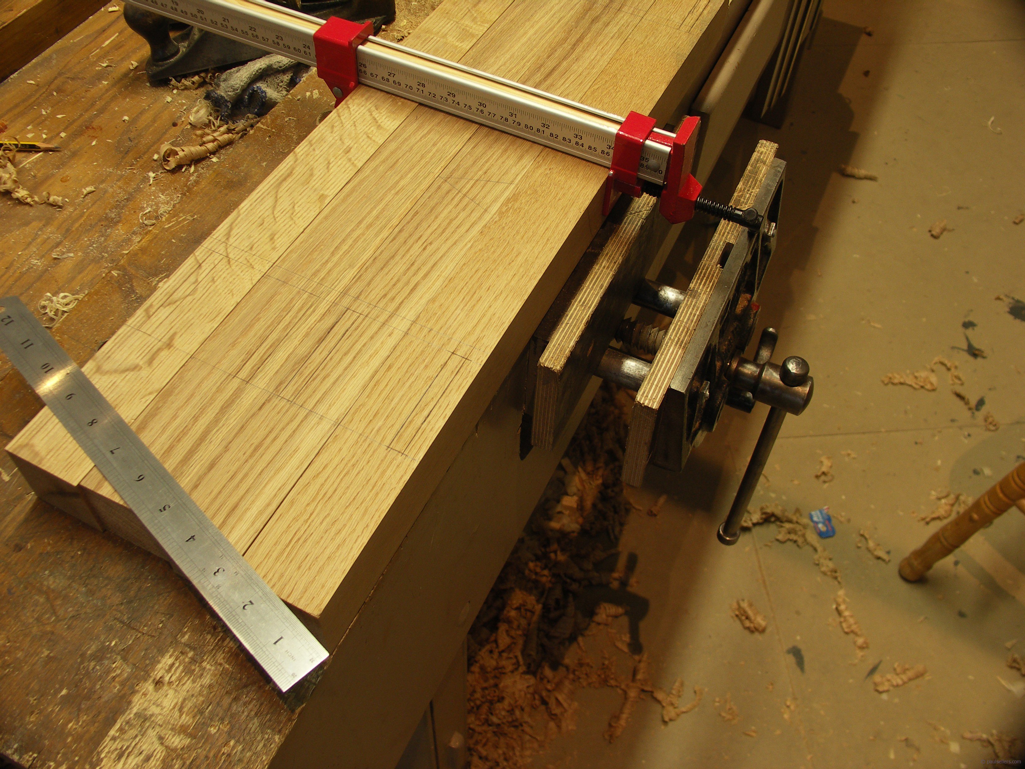 Yesterday I stacked up my planed foursquare legs ready for laying out. I gang them up and clamp them so that all rails correspond perfectly and layout for mortises are exactly aligned with no discrepancy. It takes only a few minutes or so.