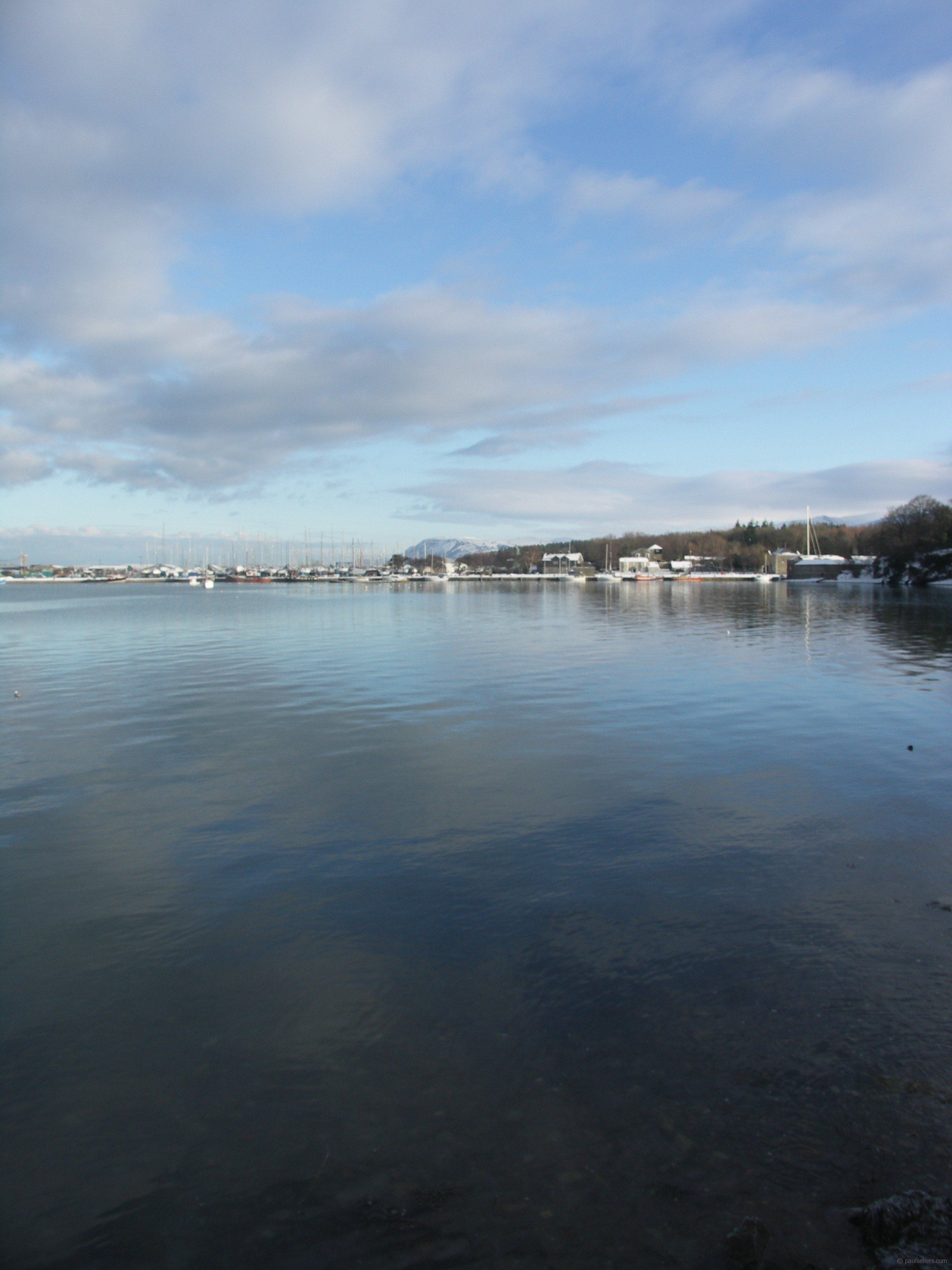 More sunshine this morning. All the red leaves on the castle walls are gone, save for a few on the eastern side by the entrance. Everywhere lush and green and sheep and cattle graze down to the shoreline below the workshop.