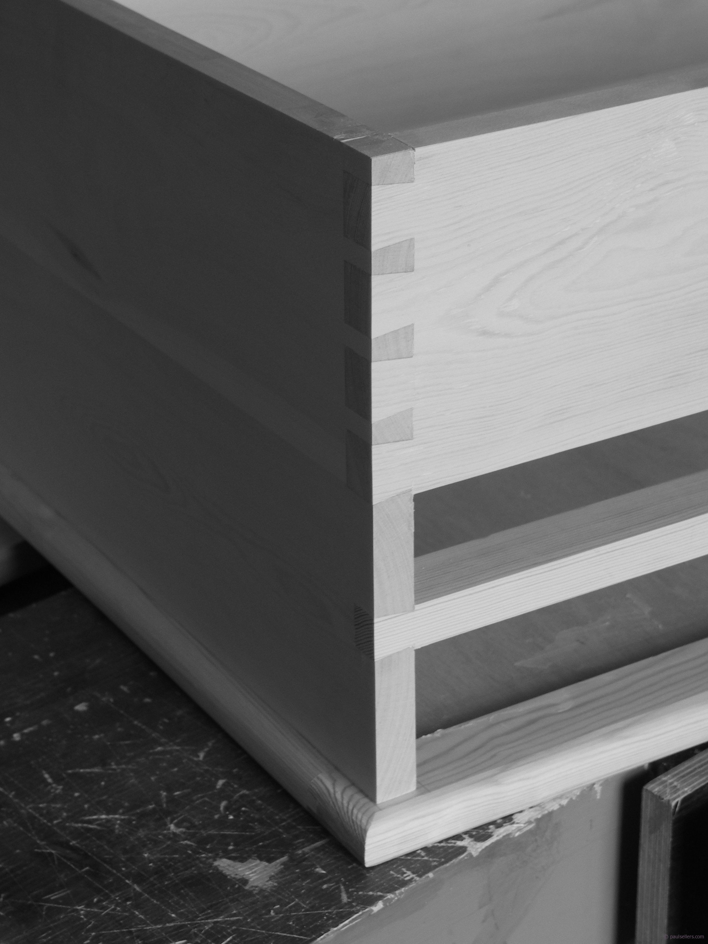 I laid out these dovetails conventionally on this corner and on the other end I eyeballed all seven Keep following.