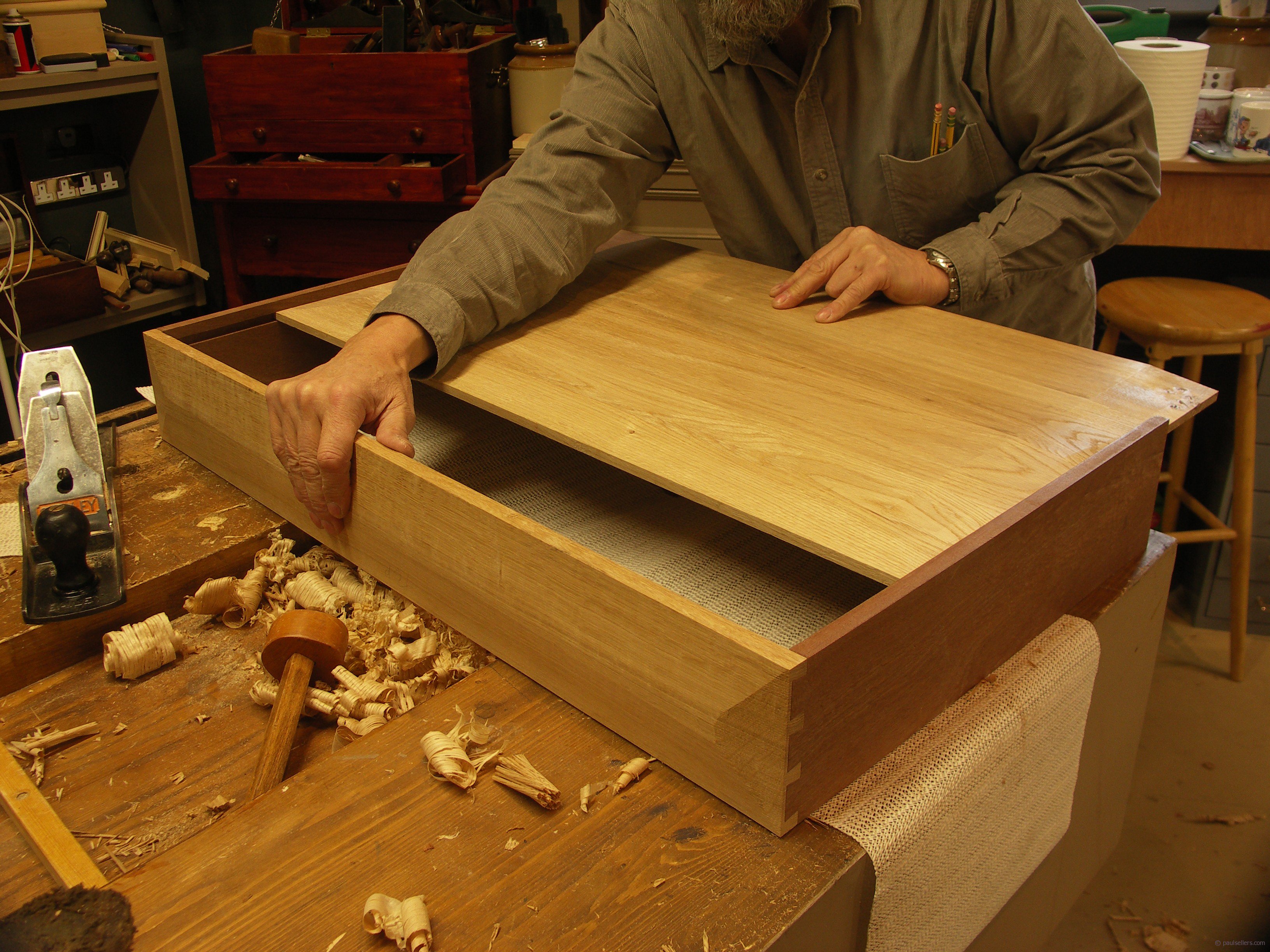 I make certain that the ends of the drawer bottom are square to the front edge before installation.