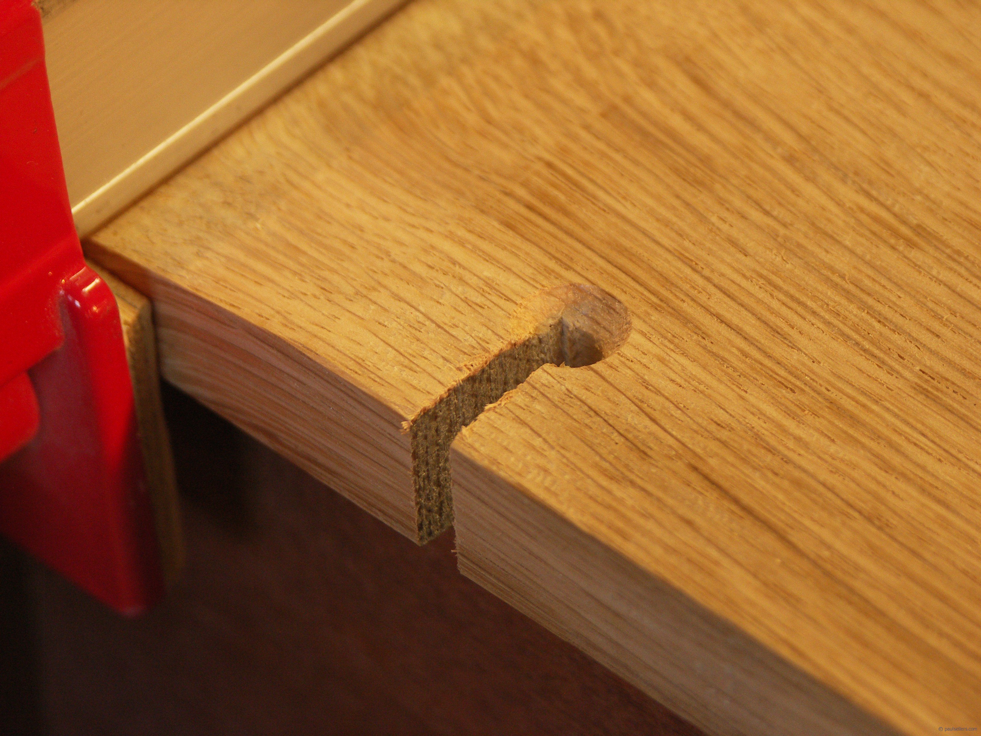 With the drawer bottom fitted I create a countersunk and slotted screw channel at the back of the drawer to secure the drawer bottom to the drawer back.