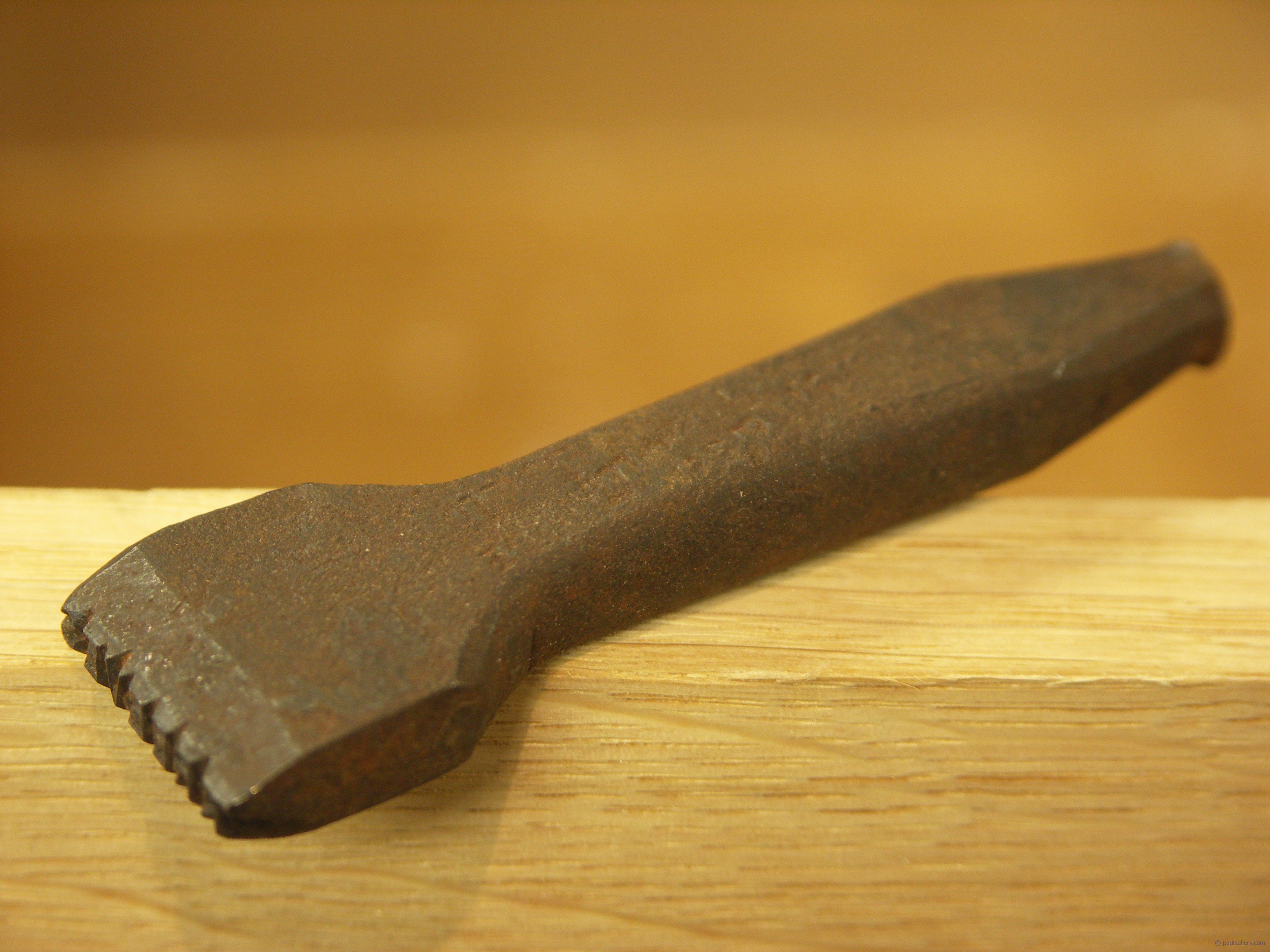 Craftsmen through two centuries have used personal name stamps like this to mark their tools permanently. It would be easy to lose a tool or two when half a dozen men were working on a large project.
