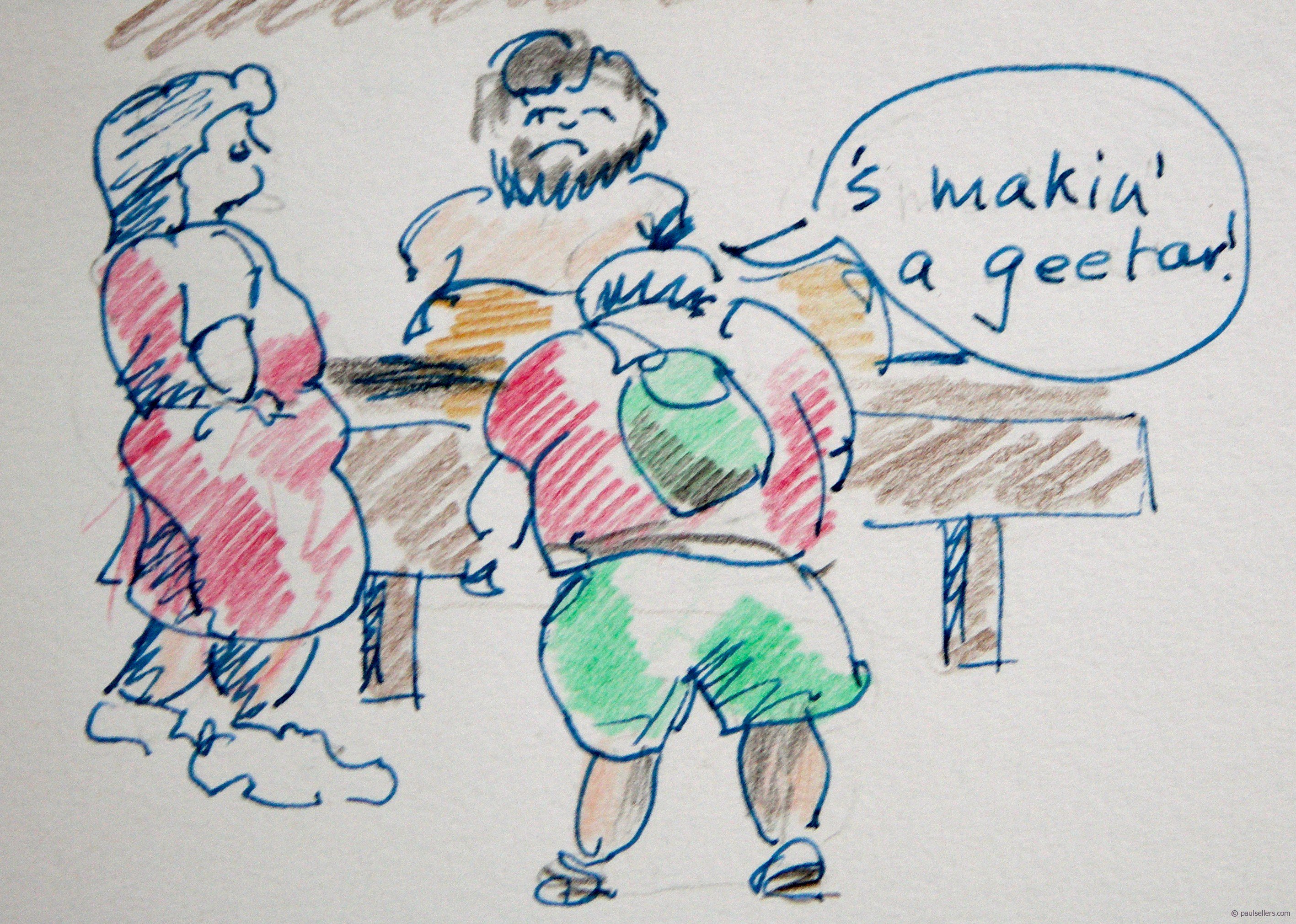" 'e's makin' a geetar." He said, stretching the vowels three times their usual length.