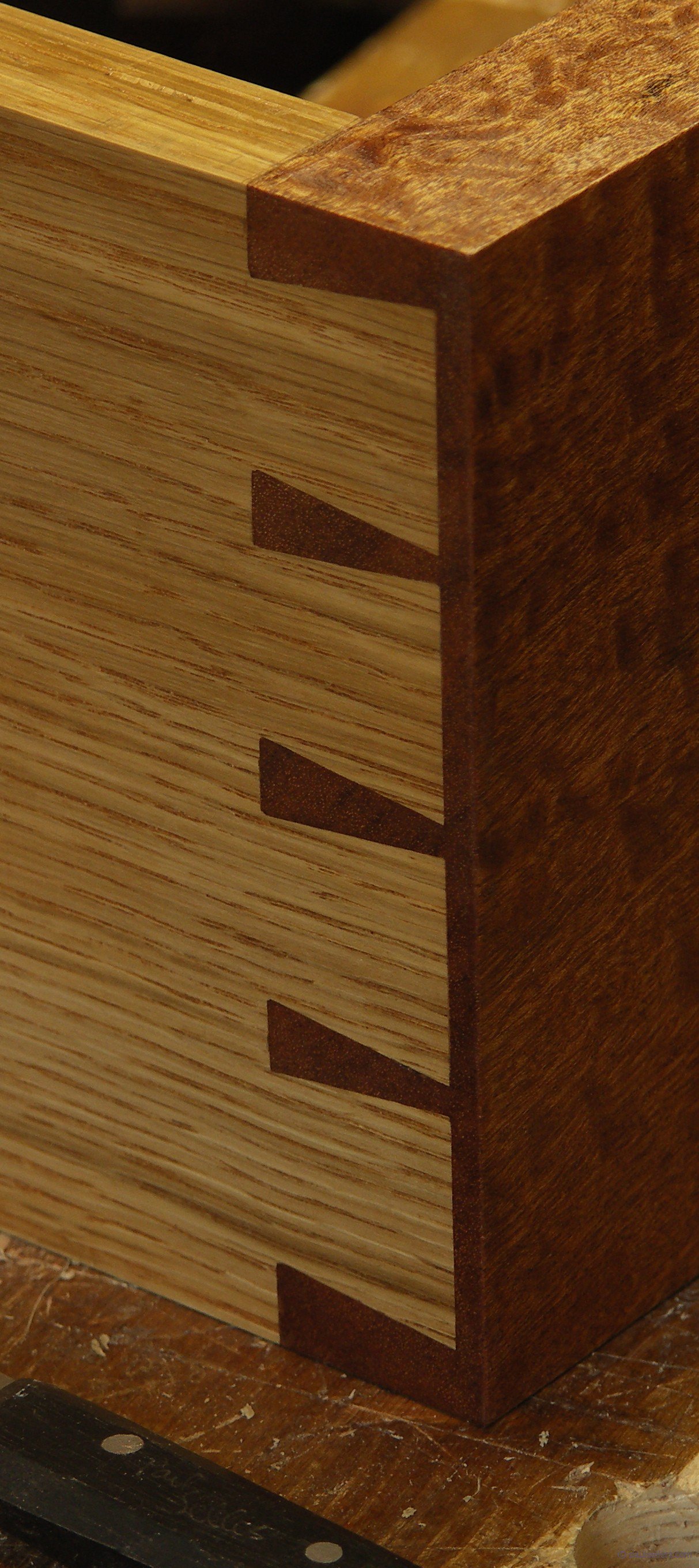 Woodworking for me is about working the wood. If I feed a board through a machine, the end result is perhaps a parallel board or billet with squared edges to boot. The surfaces are never finished well enough for all aspects of my work and if I have one drawer to make or ten I personally would never use a router to make each joint. To me it seems quite, well, primitive. No matter how you slice it a machine cut dovetail looks like a machine did it. Hand cuts, even though equally perfect, look hand cut. People don’t come to me because I am efficient and have the machines to get the job done yesterday. They come to me because they want something made by hand. I use machines on the work, most of the time to dimension my wood, but I still prefer to hand cut my joints, plane and scrape every surface, layout every project full size on a big board and everything else by hand. It’s dead simple; my life I mean.