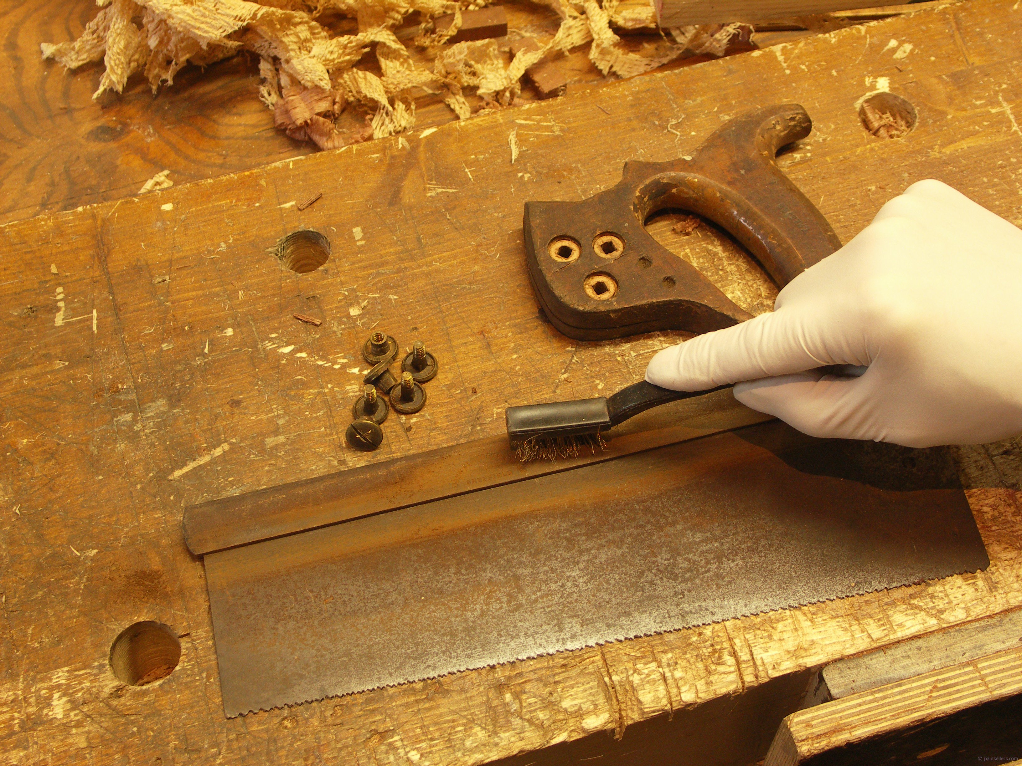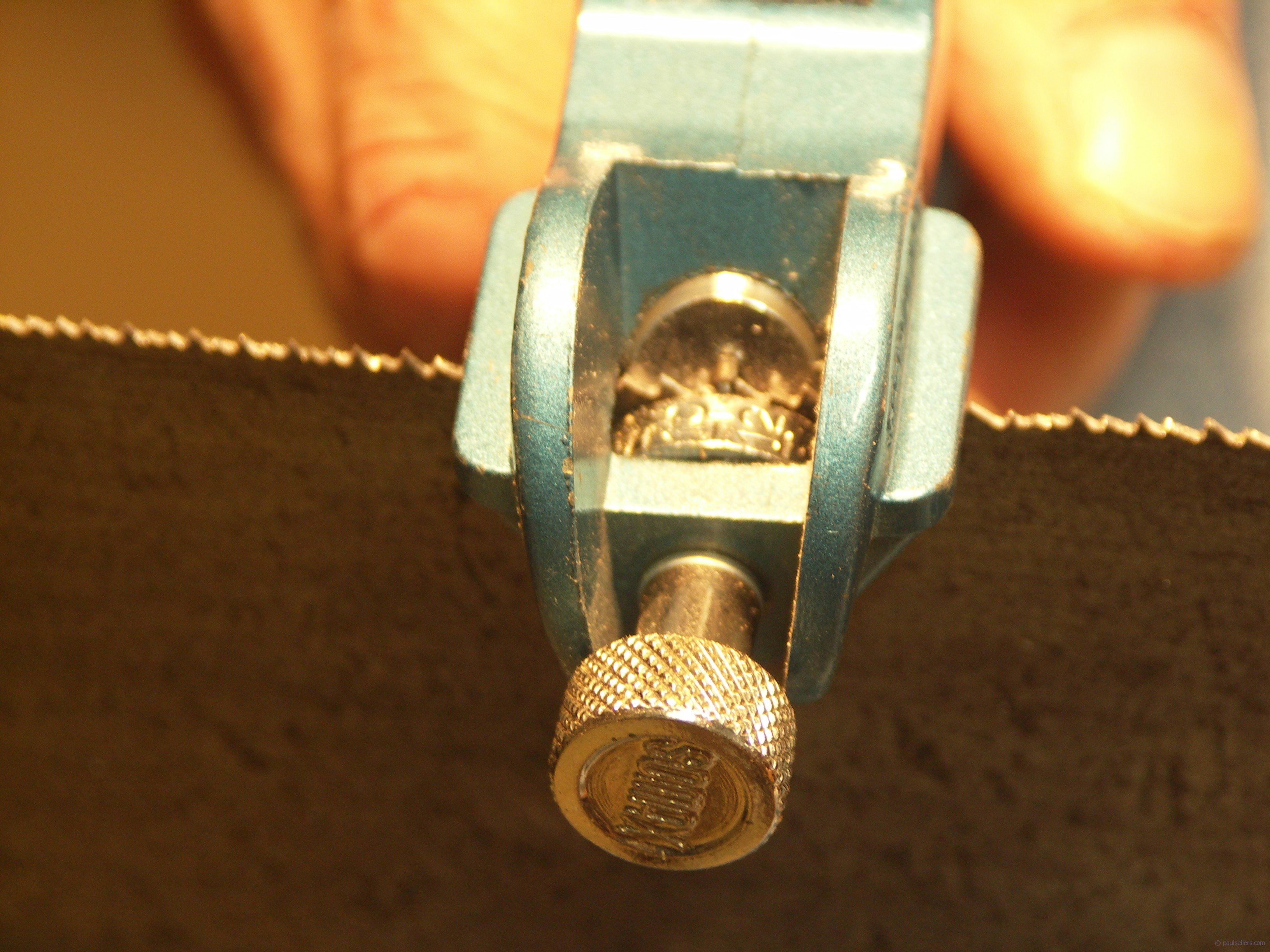 With the teeth cut, it’s simply a question of setting with pistol-grip sawset. I never use a set more than #12 on any of my saws. Sometimes even this is too much so I put a hammer in the vise and remove some of the set by tapping the teeth with a second hammer, using the other hammer face as a small vise.