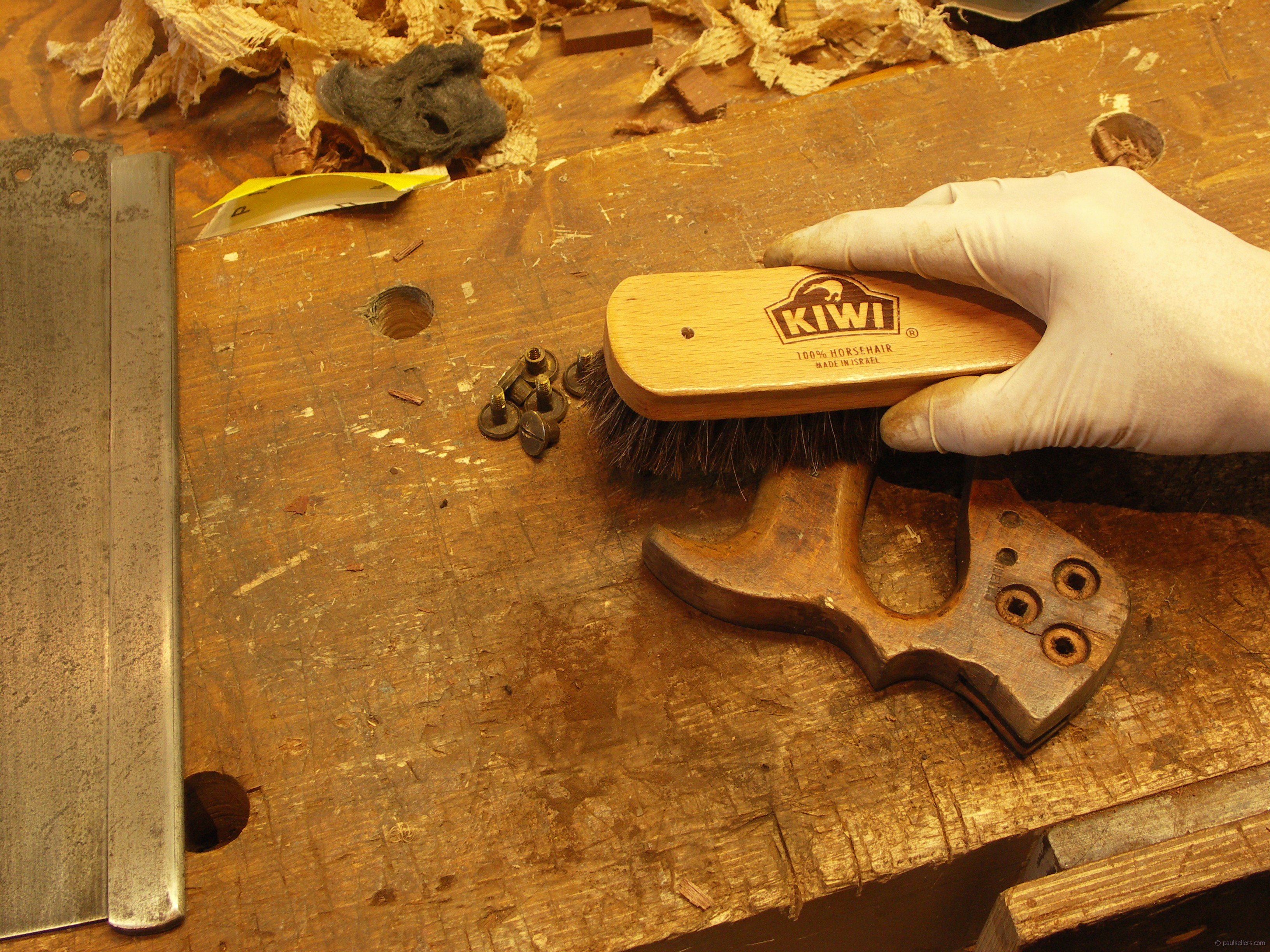 I use a Kiw shoeshine brush to polish out the finish.