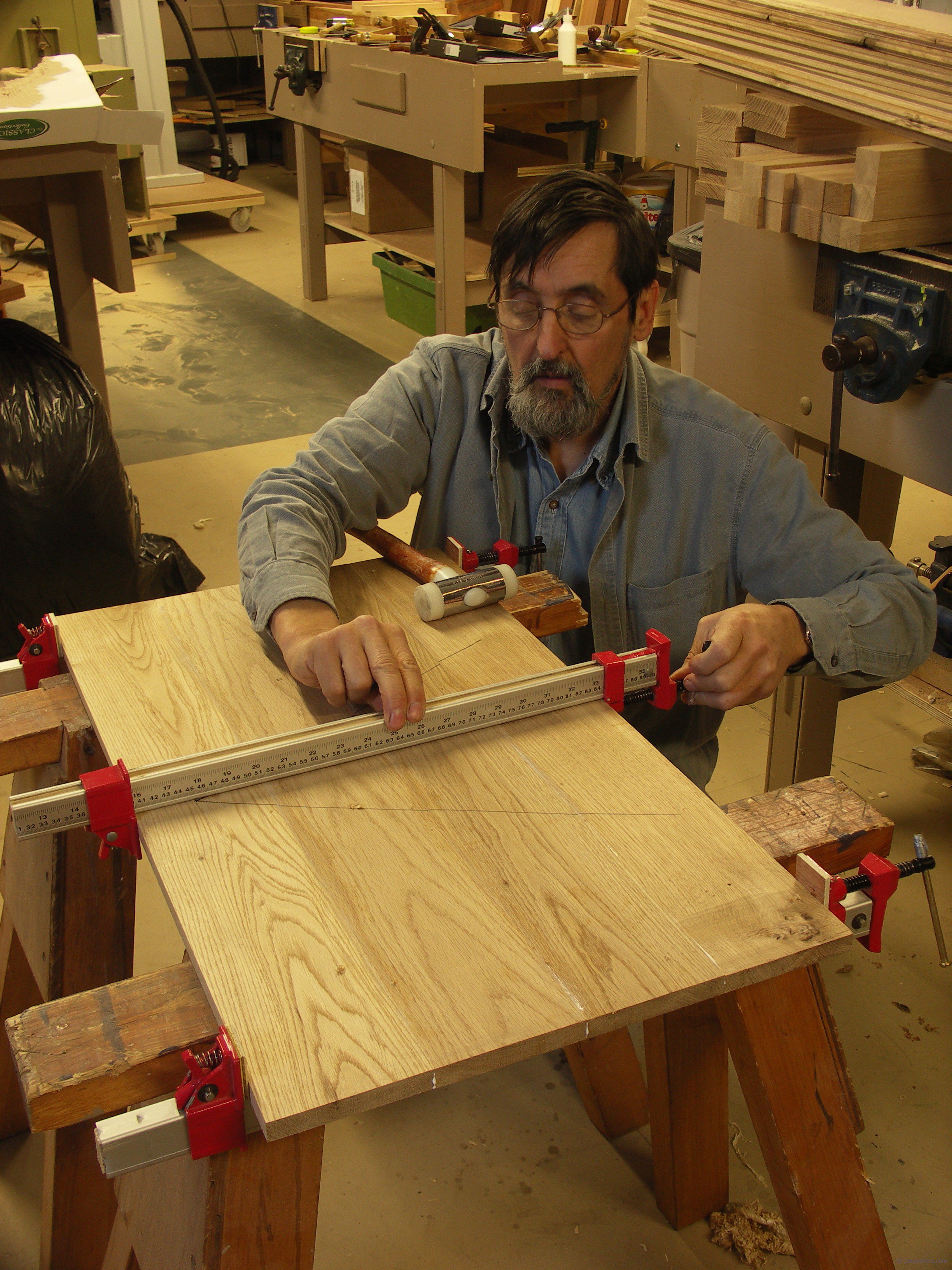 More work on the Hope Chest today. I managed to rough out the oak for the bottom of the chest and my drawer bottom. For the drawer bottom I used the bandsaw to rough cut my 1” stock down to 5/8” and hand planed it down to a full ½” ( a 1/16th inch full).