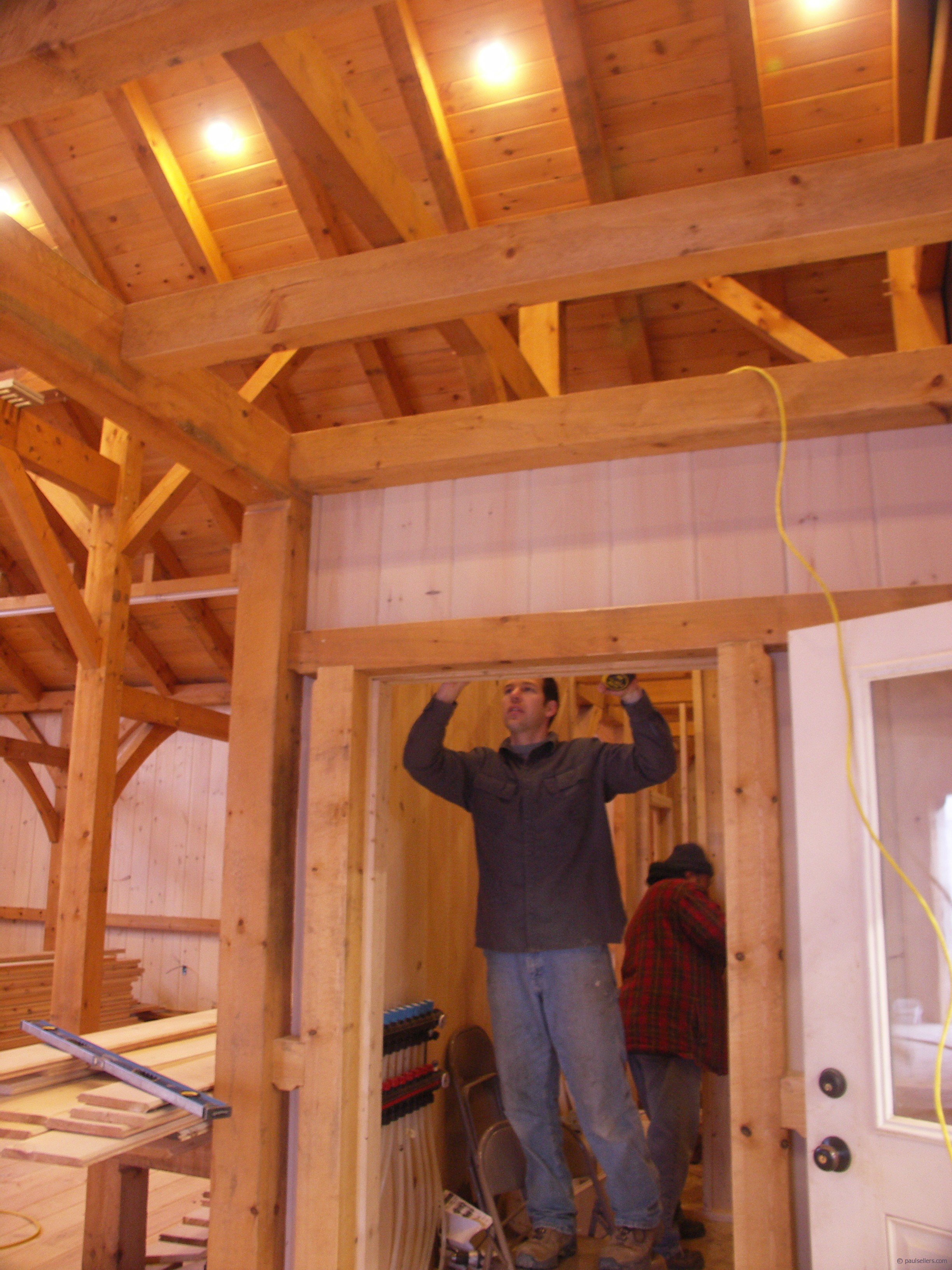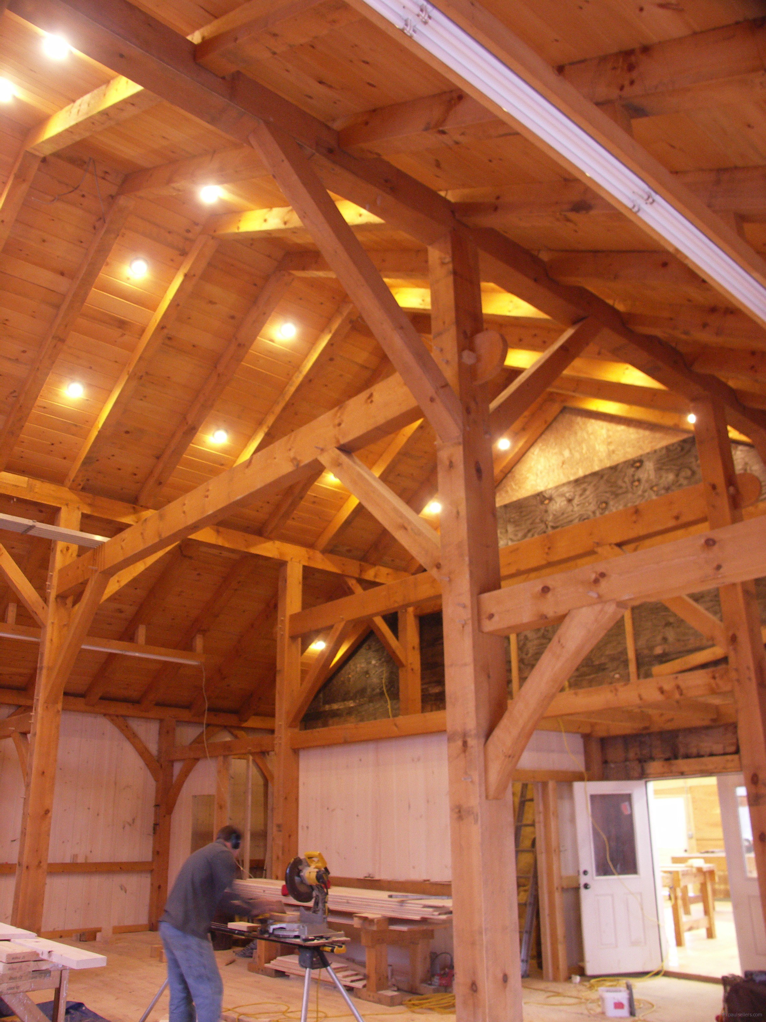 The inside of the new woodshop is really amazing with its timberframed mass and vaulted roof area; really very beautiful. It will be lovely to hold classes here and see how things will develop. I love my workshop in the castle at Penrhyn too. This one is just very different. I know our US woodworking friends are just going to love it and everyone here has worked so hard just for that reason.