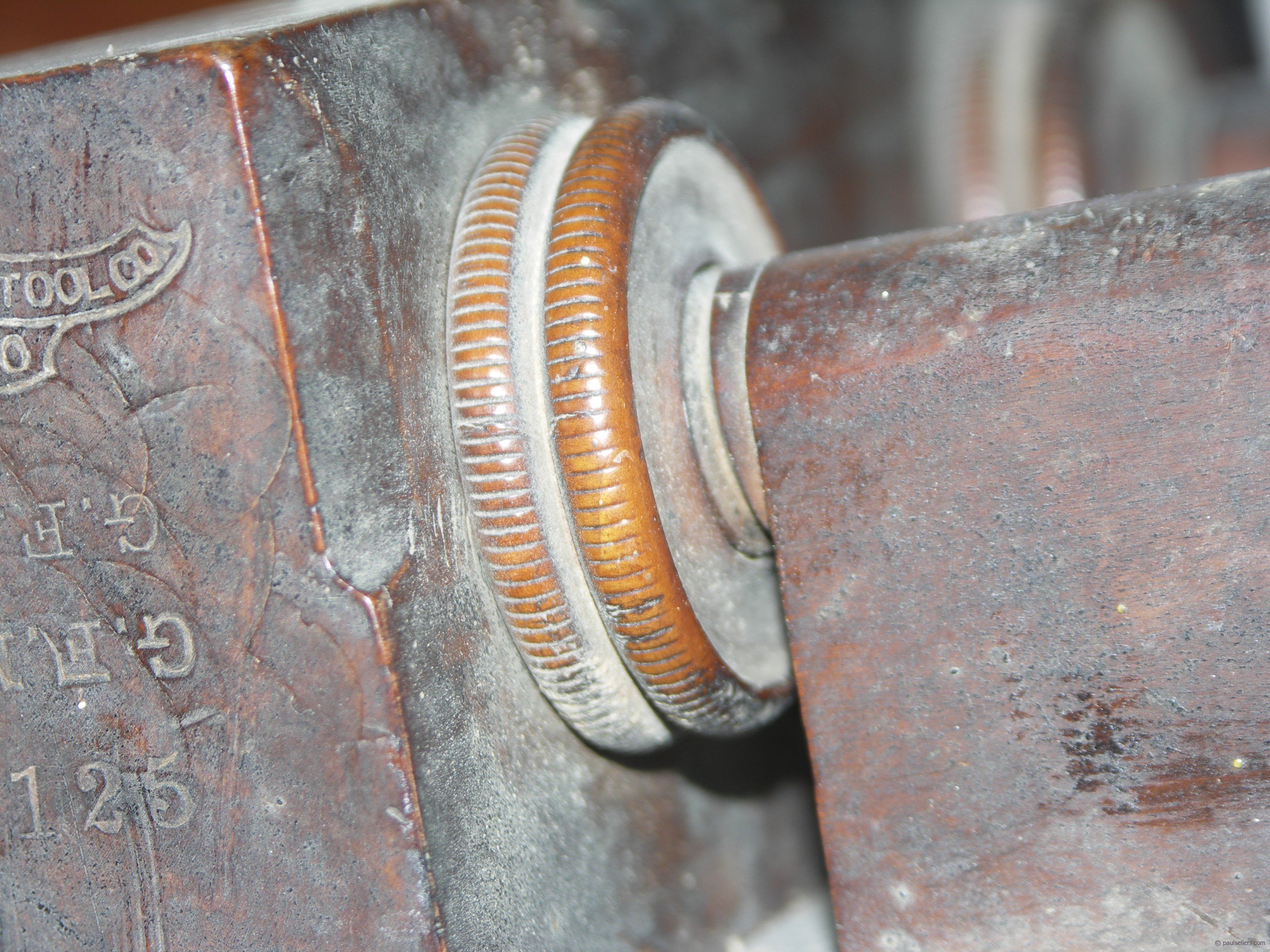 The toe end of the plane is stamped with the Sandusky Tool Co Ohio curved banner as can be seen in the top picture. Aspects have some boxed wear areas like along the fence and around the depth stop. Longevity was built into the plane and though dirty for use and collected dust the plane is in complete and functional condition and I am glad for that.