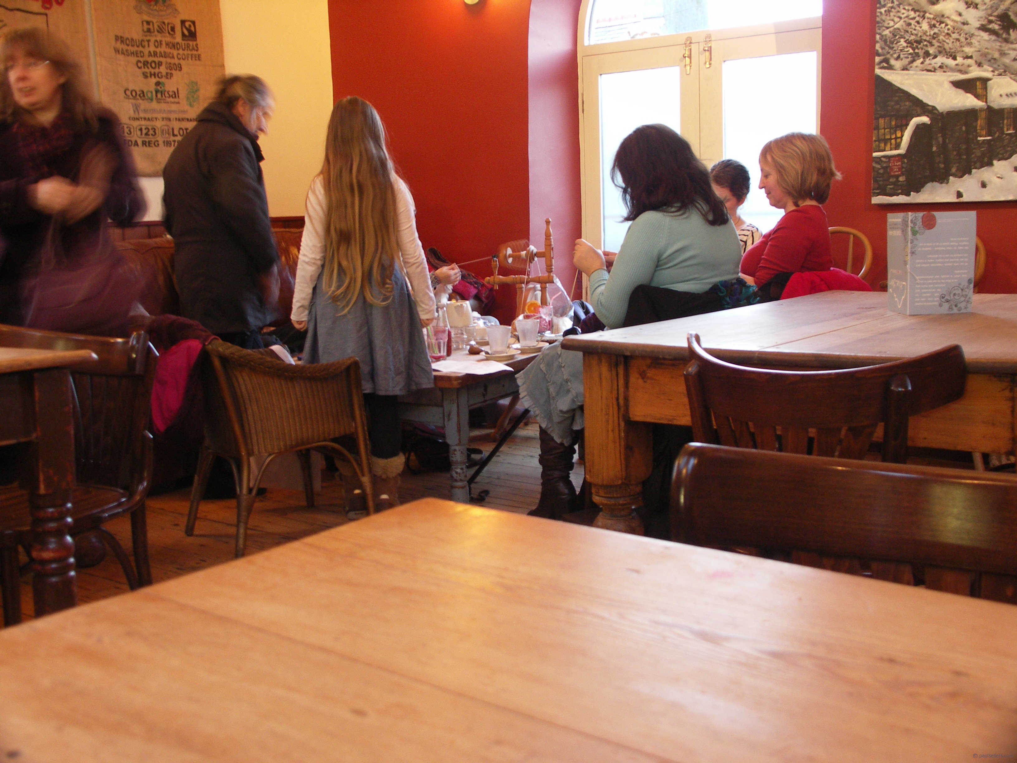 In the chaos of the confused world at large I watch the group women knitting in the corner of the café. The woman in the corner chats as she spins on her spinning wheel and seems at ease with what she spins and what she says. Younger women come and go, littler ones try their hand at spinning. It's restful watching them. Some might say these are hobbyists. That dumbs down what’s taking place here. The impartation through three generations, the conservation of a craft, the preservation of a way of using natural fibres to create clothing warm for winter and babies born and yet to be born. I like to watch their hands move and their lips exchange words back and forth like a shuttlecock on a loom. My friend Phil Adams comes over and sits with me as I sip my freshly made tea and we too exchange words about wood and woodwork. It’s brief relaxation and friendly people that create a sphere of restfulness. Computers and keyboards cannot measure this sphere nor recreate it. They cannot add to it in any positive way. They will never know the printers of old, how they rested the lead letters into the frames and printed by hand their documents one at a time. Engravers too know spheres of creative work no mass printing press or printer today can ever know. The crisp blacks and the hue on the page we no longer see except perhaps to glimpse it n the world f another.