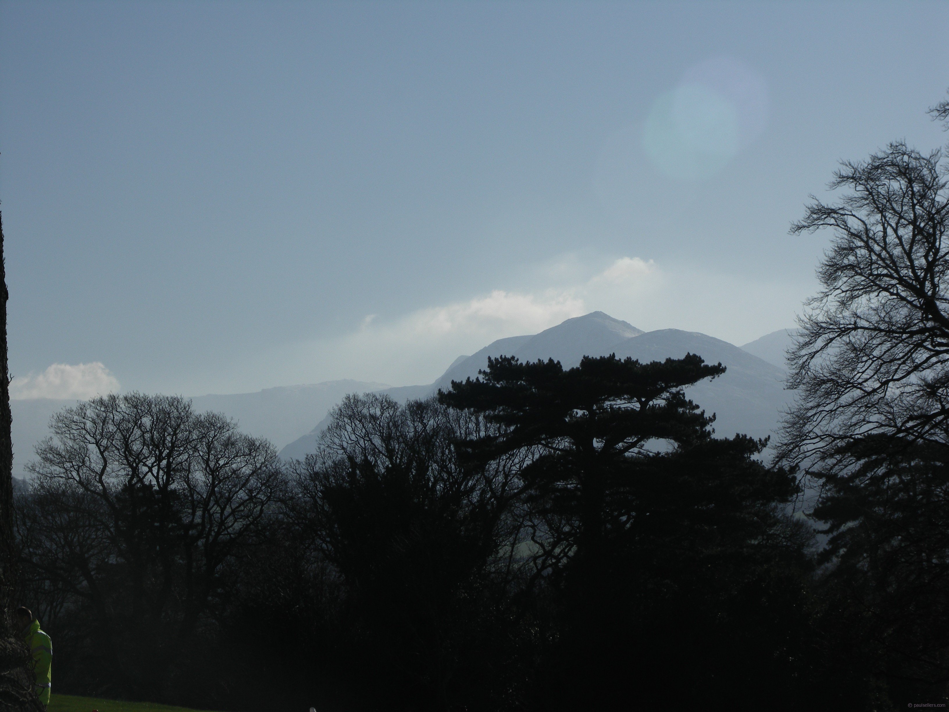 My car invaded my world today with some needed work so I walked in the cold icy woods to the castle. Walking on the high side i looked back to Snowden covered with snow and mist. It was nice as I stood out of the wind.