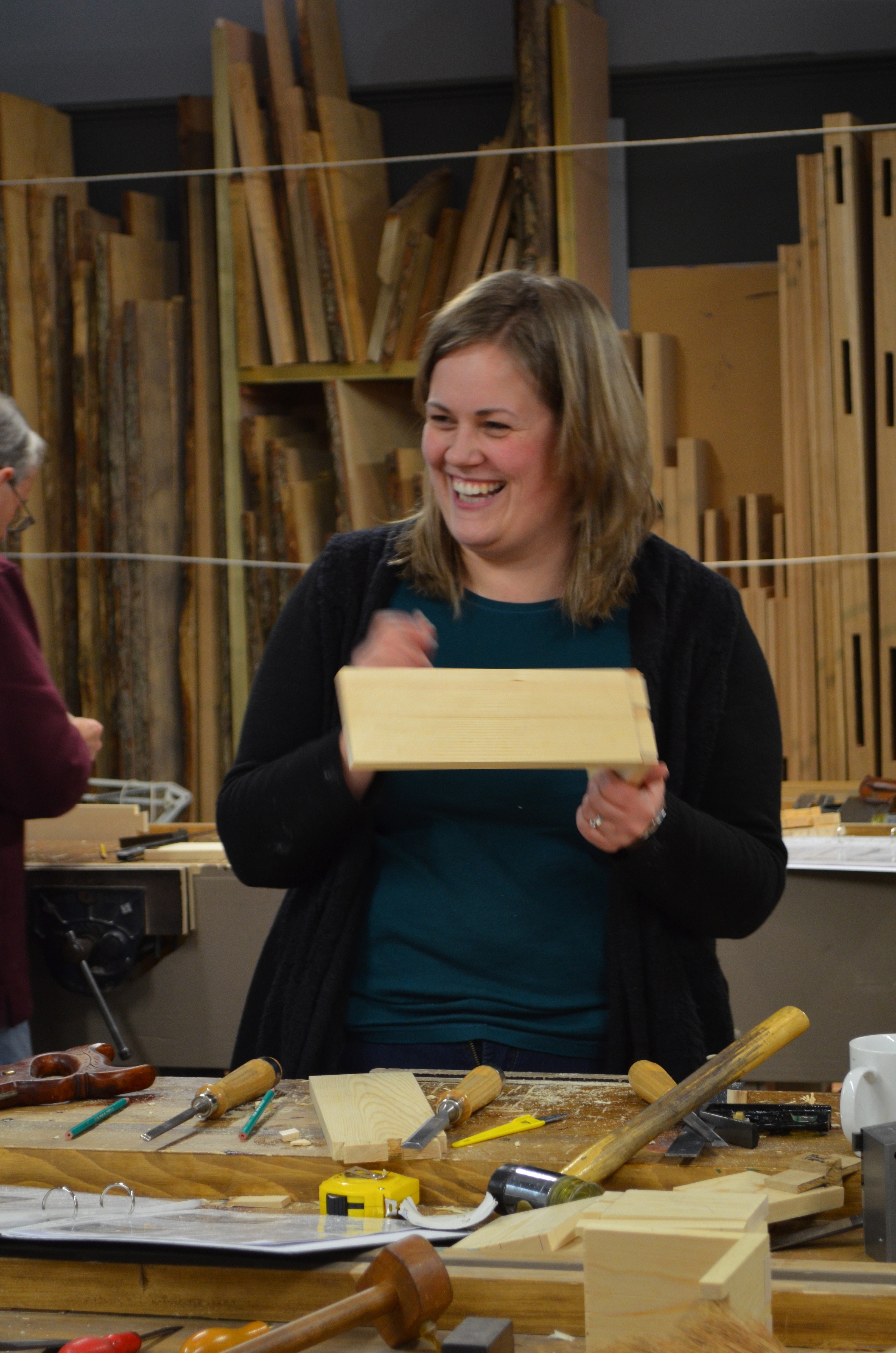 My vise was opening and closing all day long and tools were thrust back and forth on diamond plates to prove my methods of sharpening really work. The dovetails were formed with five hand tools costing only a few pounds and suddenly smiles appeared on everyone’s face. Before long we were sweeping the benches of and sweeping the floor before walking out of the door for home. All in all it was a great day all round.