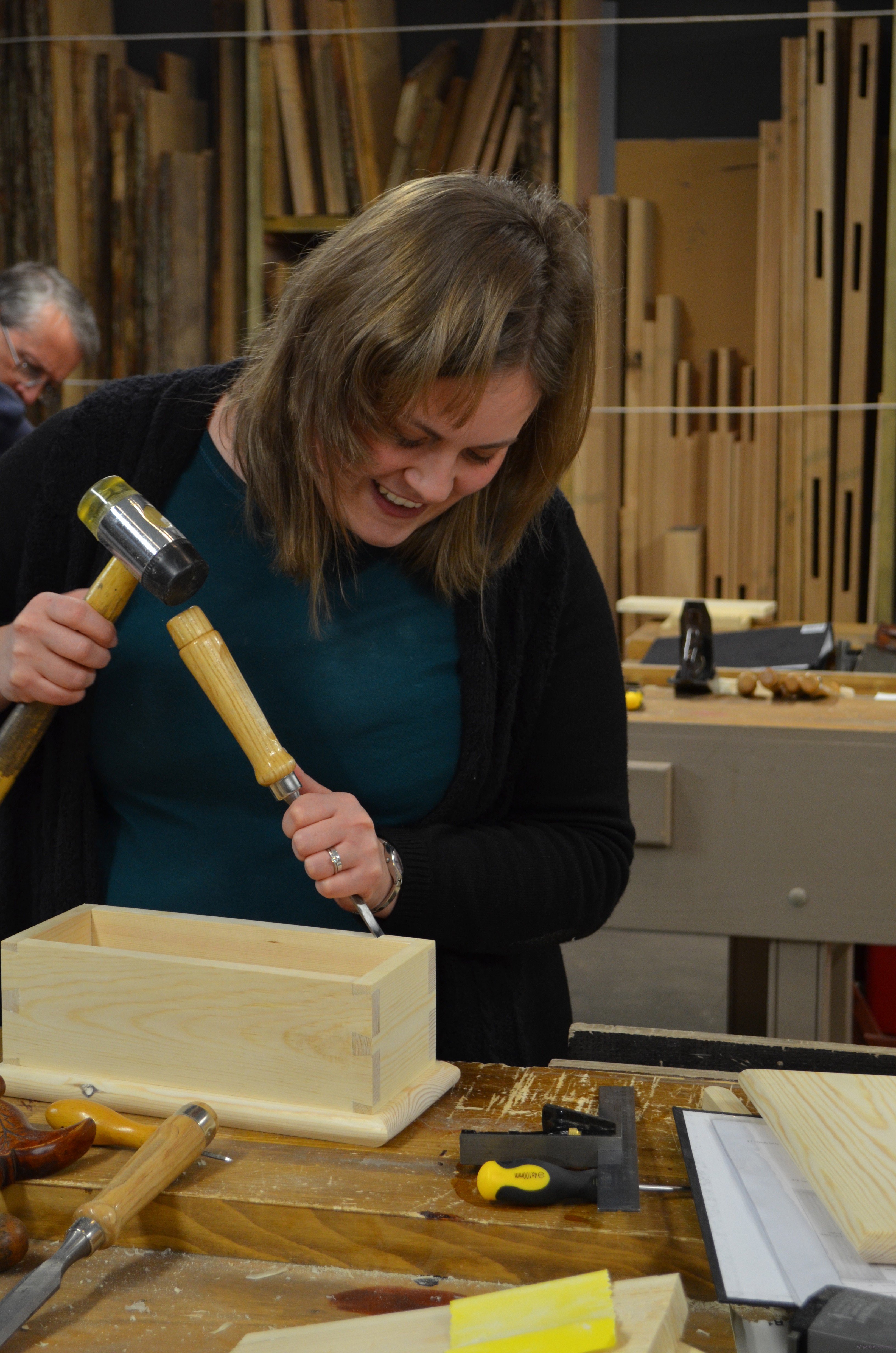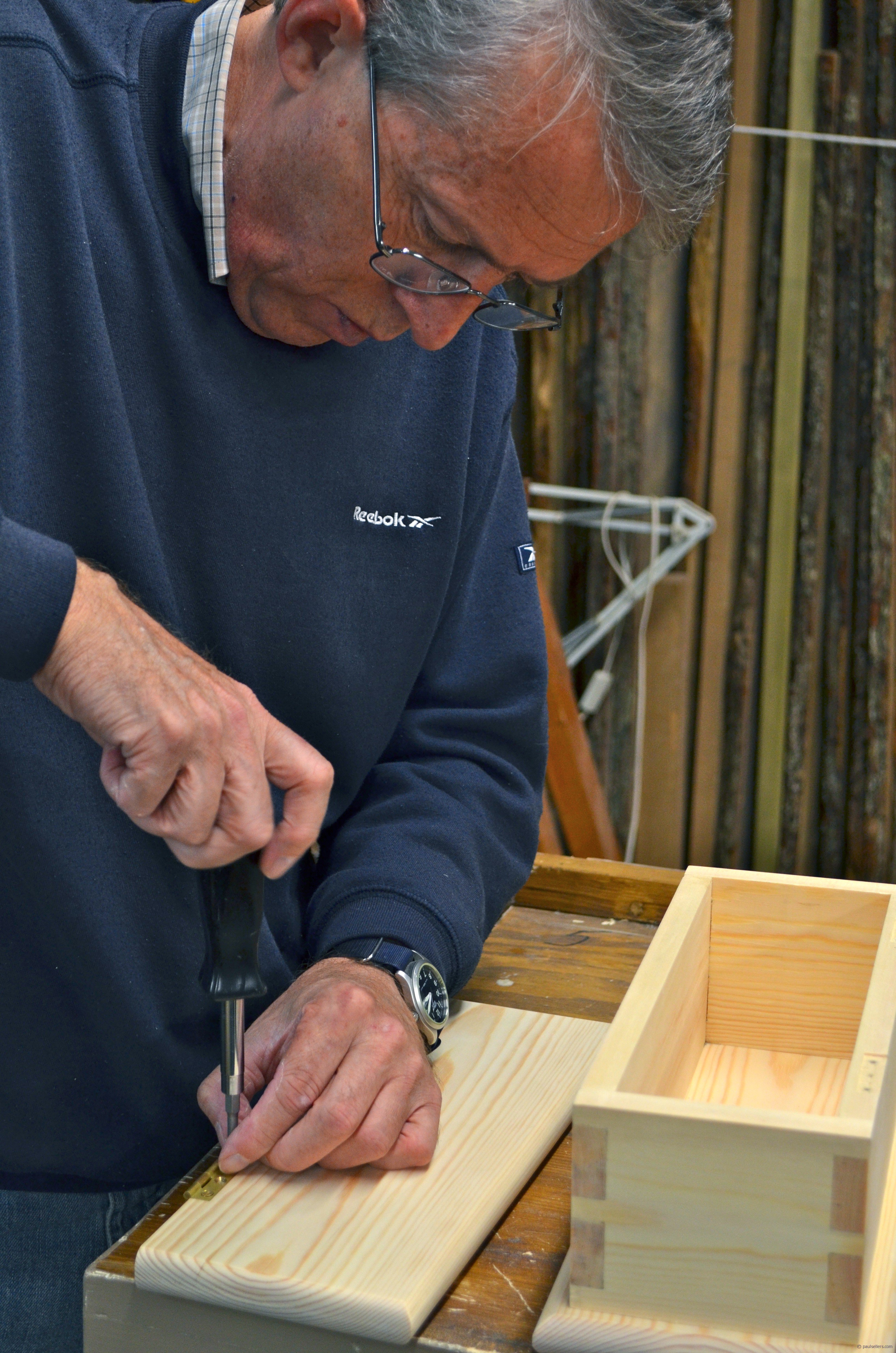 The lid fitting and hinging closes the work of the three days. There is something about hinge setting that challenges students because it's usually something they have never done before or if they did the outcome was disappointing. We focus special time on this and the result is always reflective in that a misplaced screw can upset the location of the hinge or the alignment of the screw in relation to the countersunk recess.
