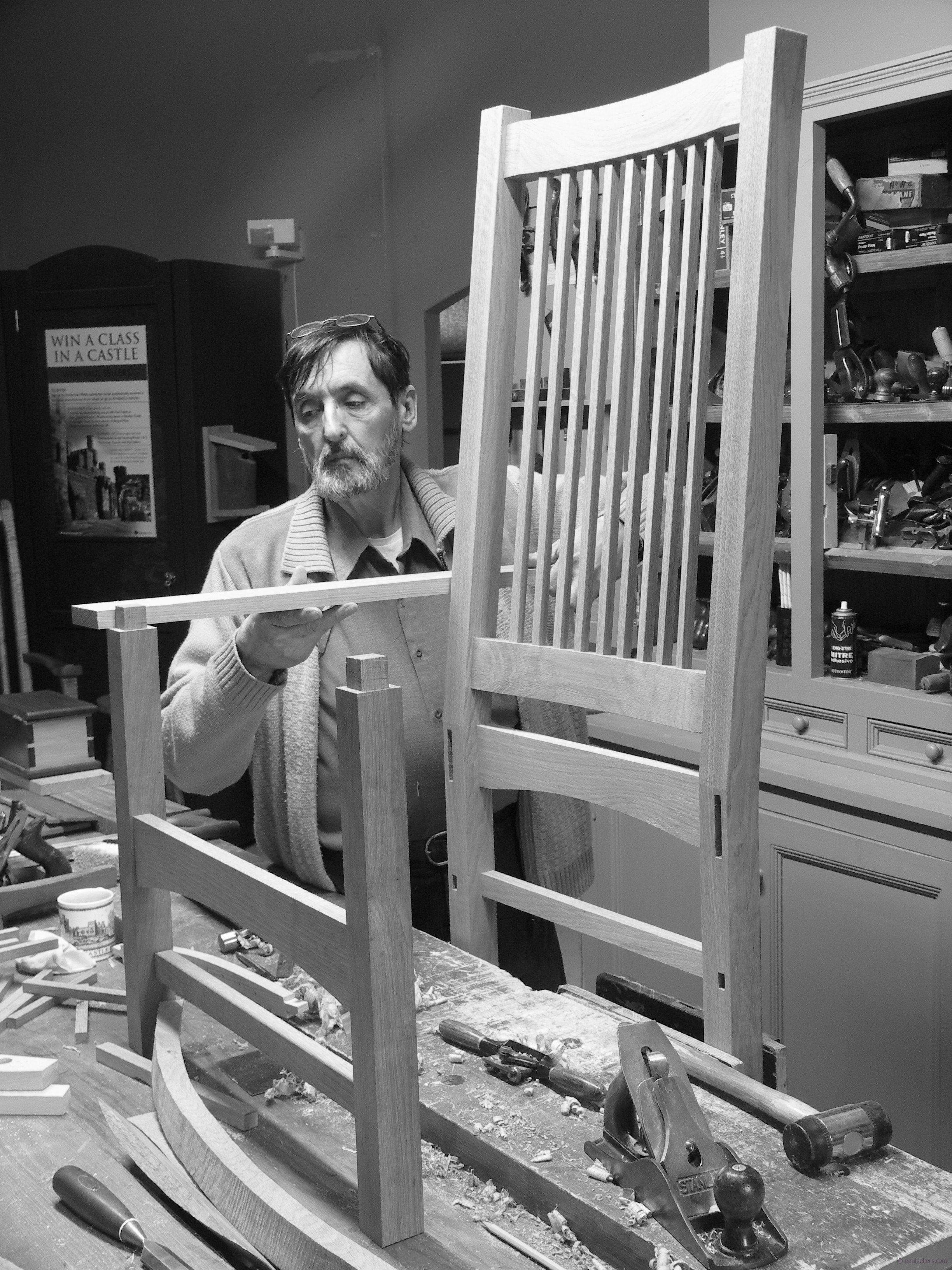 My rocking chair is moving along well and I had the back and front frames together ready for the side rails to be cut and jointed to unite them. Tomorrow I will fit them and also start the rockers that must be mortised and tenoned to the main chair. A few years ago I made this same chair for my daughter when she had her third child. I was living in the USA so I had it completely finished but not glued together. That way I could carry it in my checked baggage.