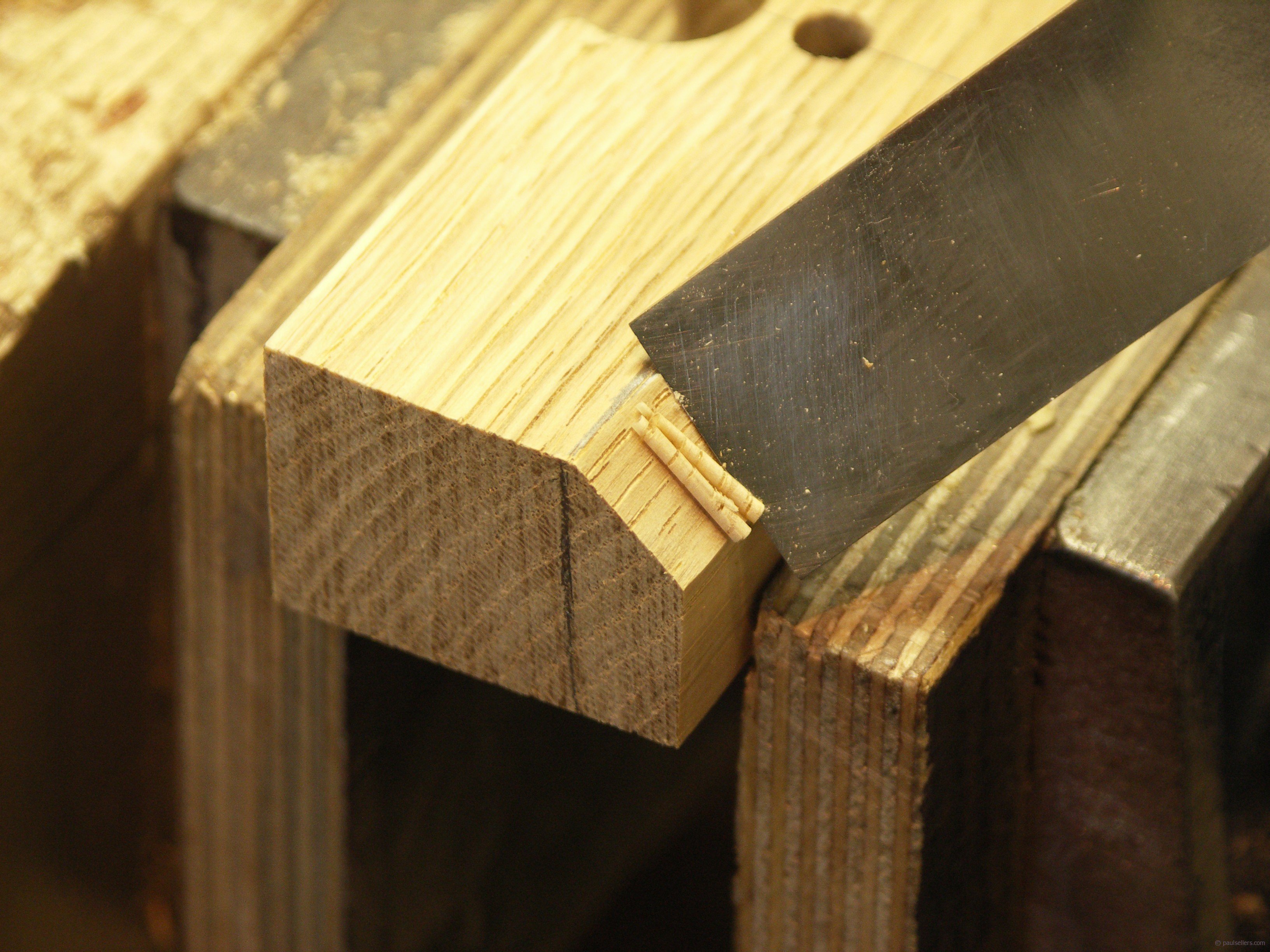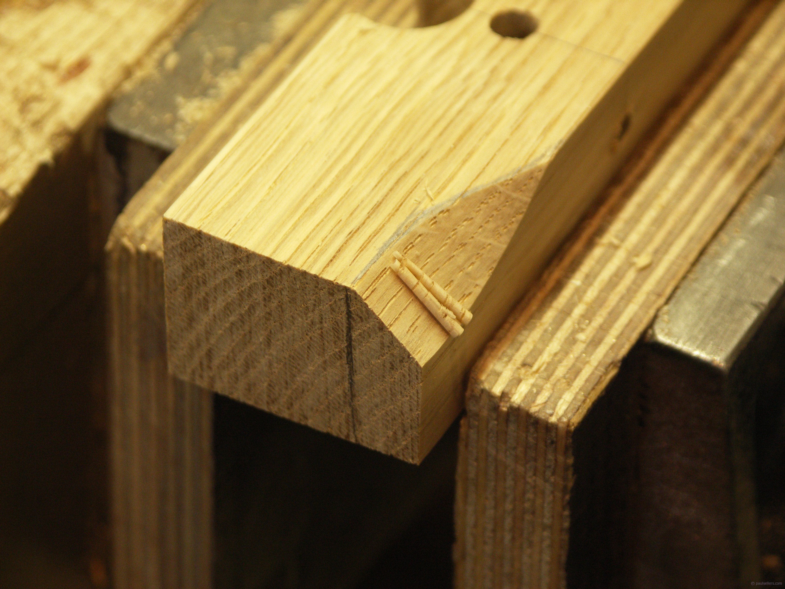 Scallops either side of the cutting iron on the back edge makes the use of the plane more comfortable.