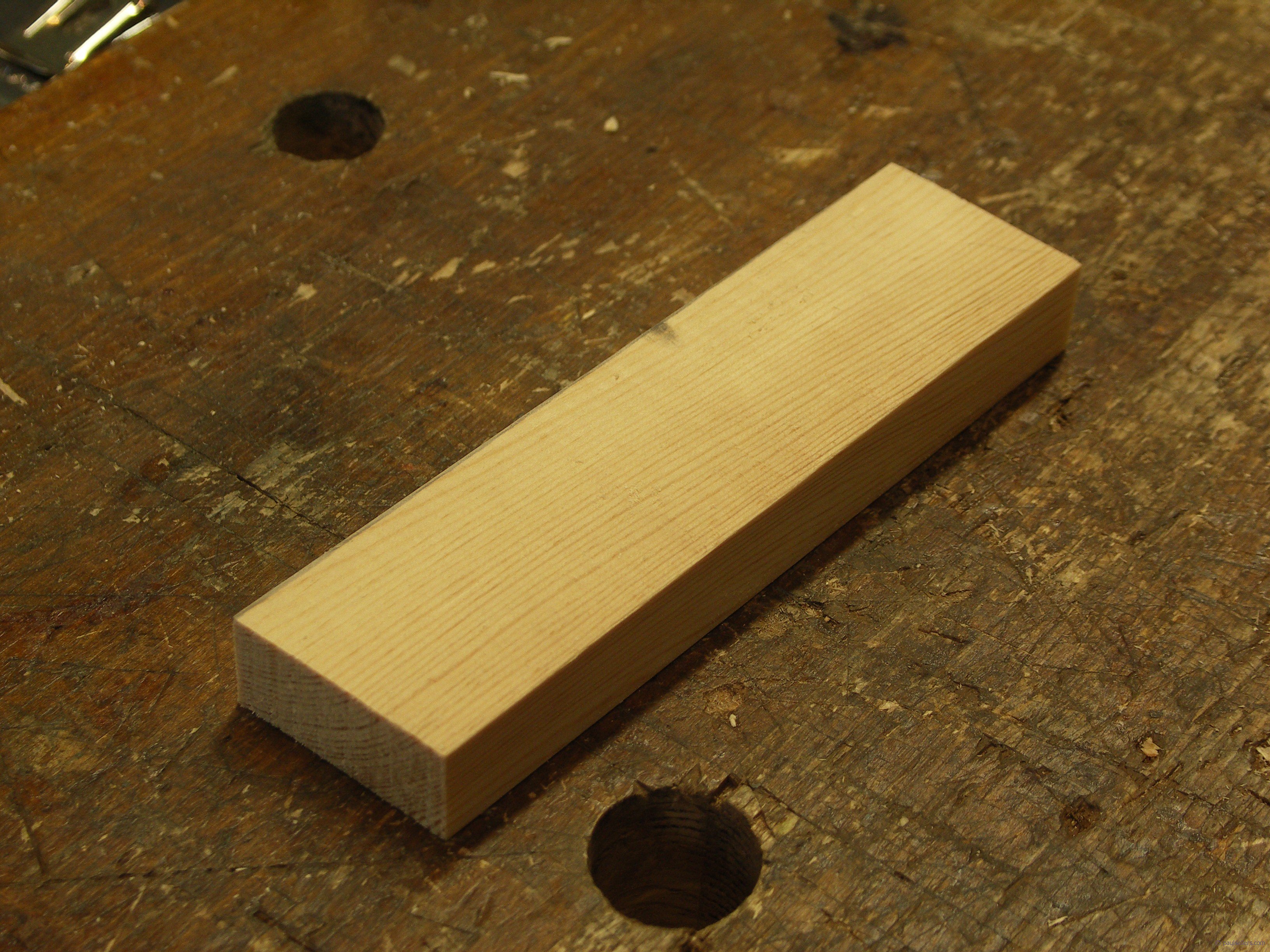 Use any wood scrap 1” x 2” x 5-6” long. Here I am using pine, which works fine.