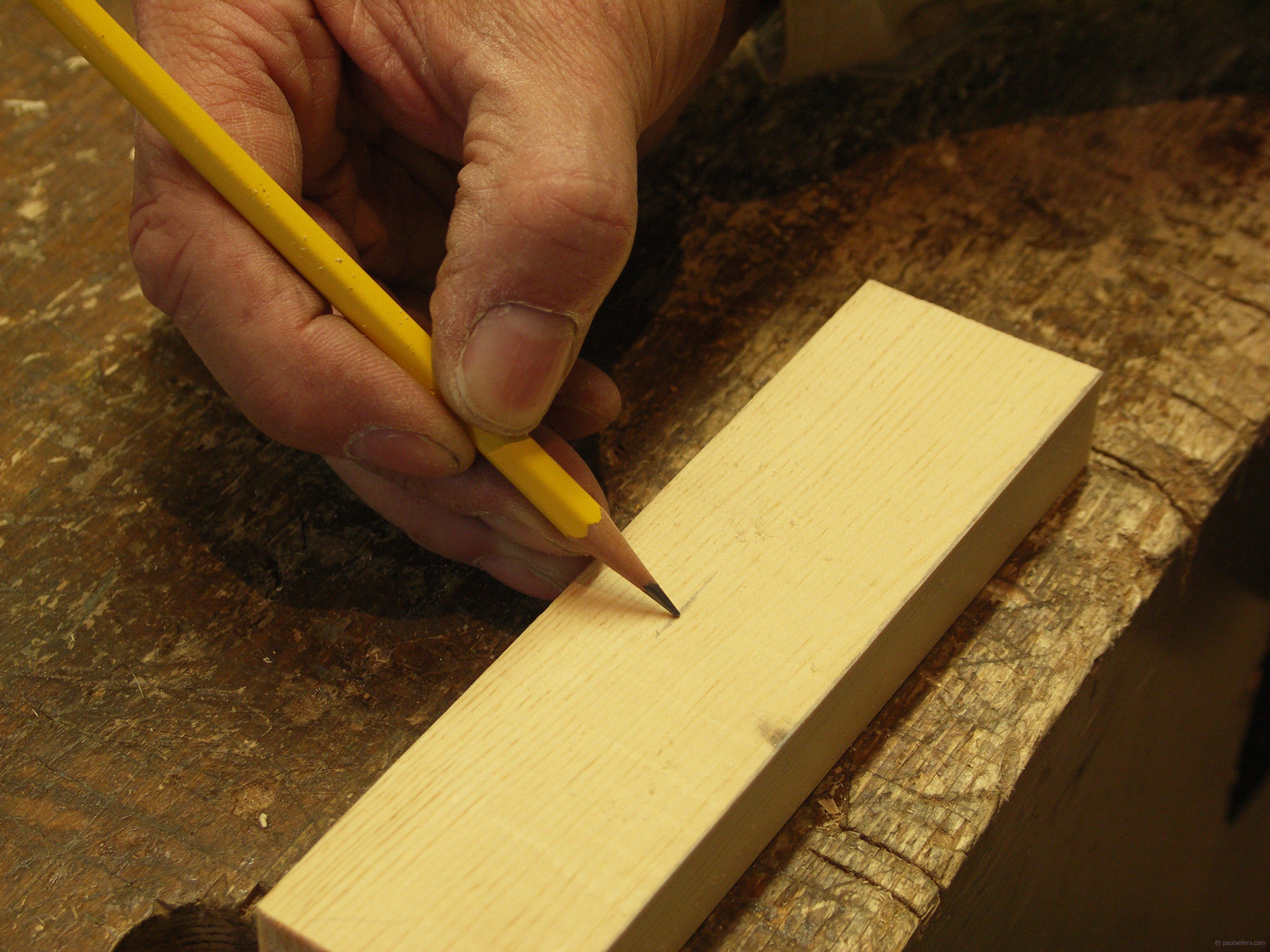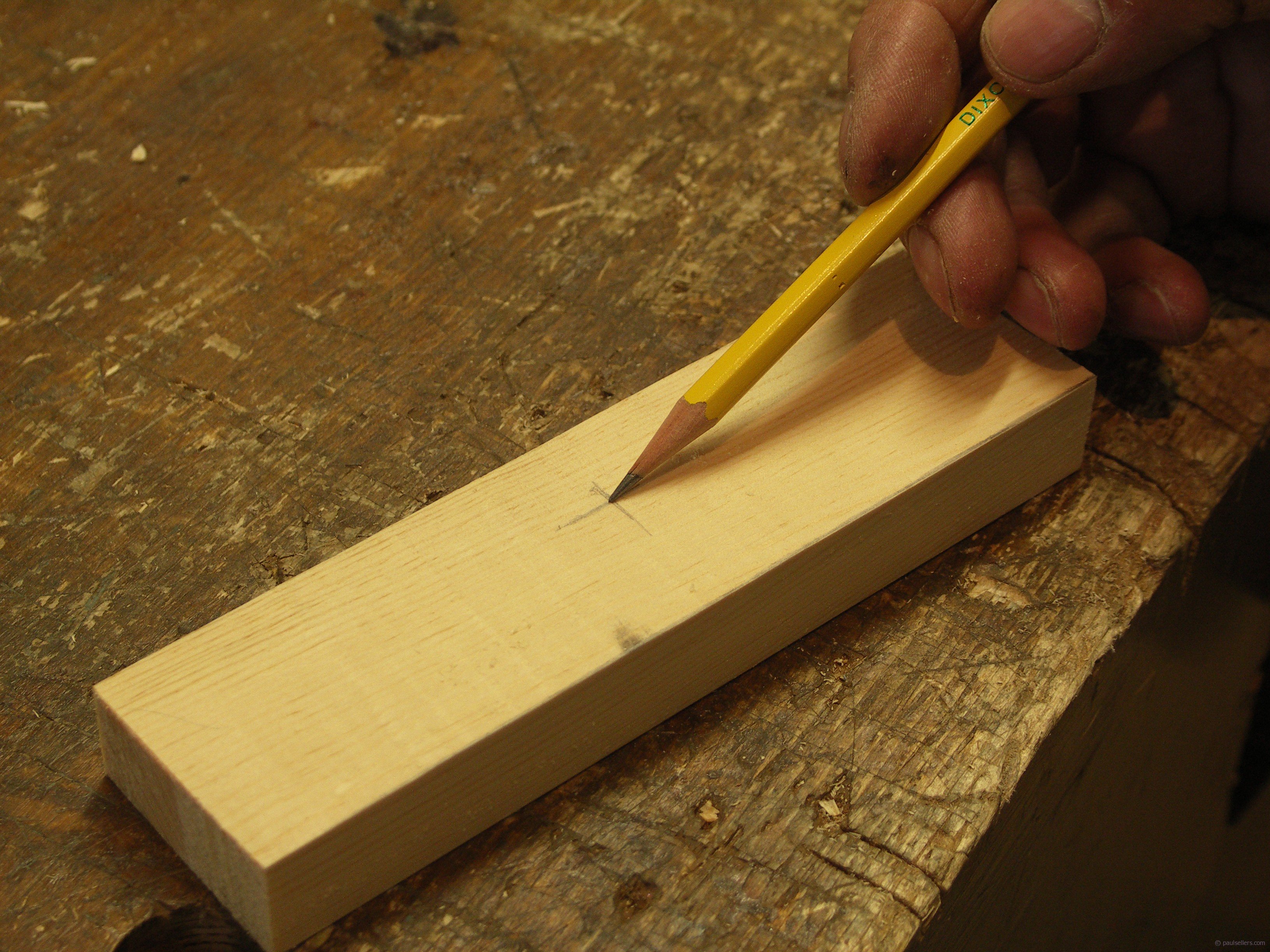 Pencil a centreline along the length and about 1/3 from either long edge. This marks the position of the start hole.