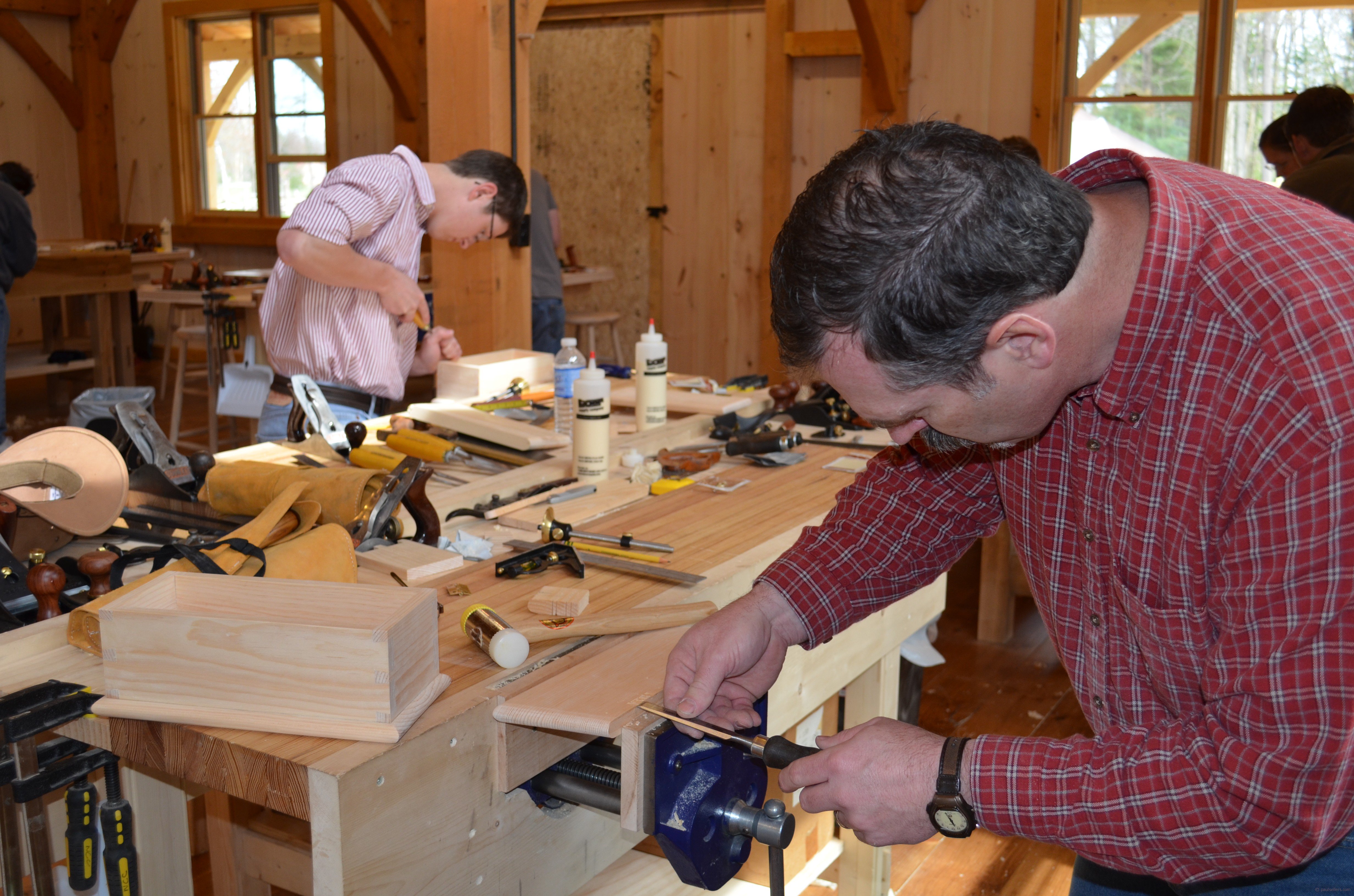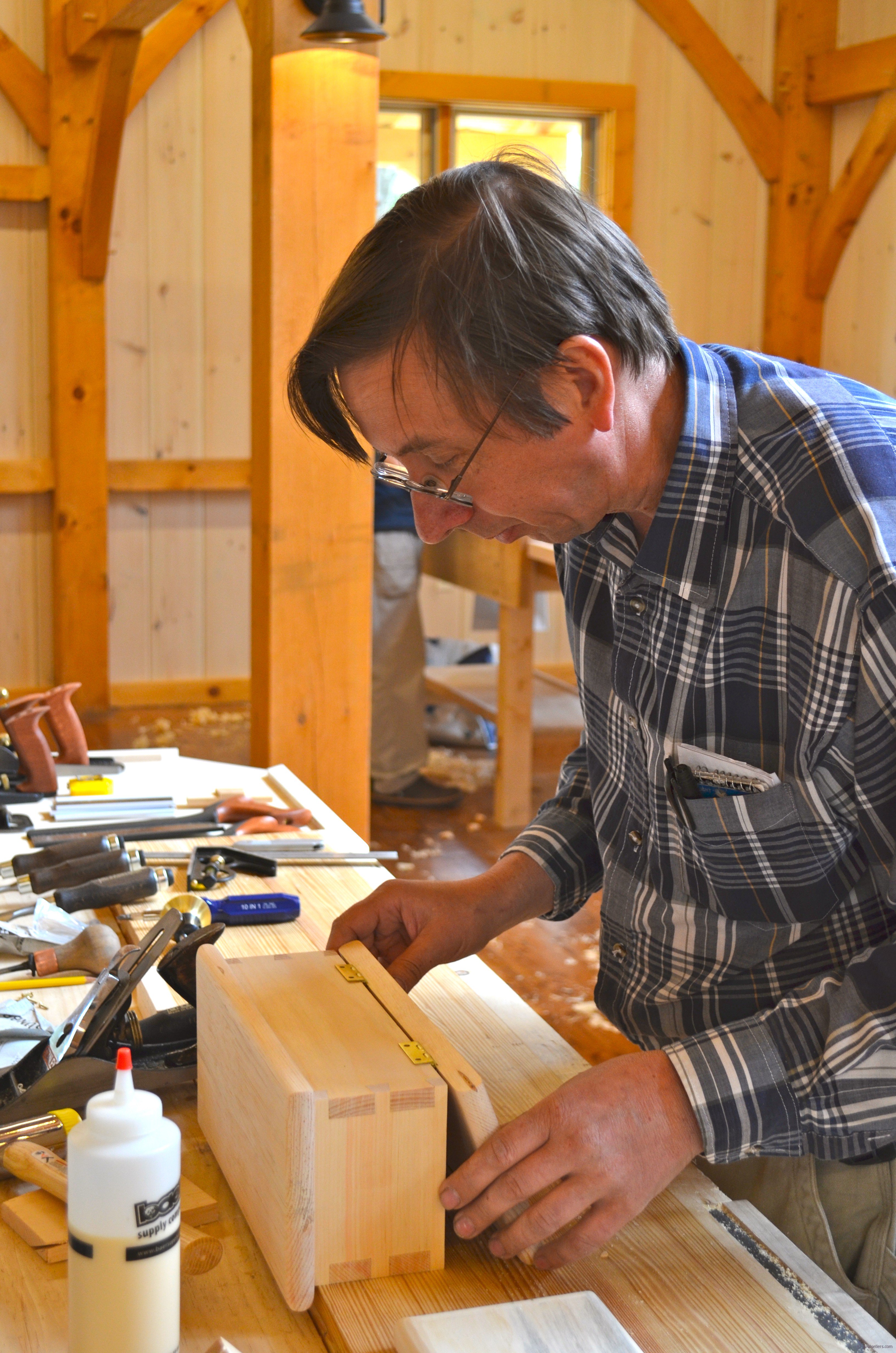 I rest today and reflect the value of what inspired the past three days of life in the new school of working wood. My pulse partners the pulse and heartbeat of others who wrought the building and the benches, the tools and the internals of progress on my website and beyond. My fresh cup of tea grows cool as I look from my window and wonder over the wonder of life. The new New Legacy School of Woodworking is now born. The first students, seventeen woodworkers, left the school last night to rejoin their families replete with a small, wooden Shaker box dovetailed pristinely at the corners. Last night they left with much more than they came with; they took home skill, contentment, excitement and enthusiasm. They will soon come back to increase their awareness and knowledge, and their expertise in wood will grow continually from now until they grow old. They will learn, train and mature and within a few more days and will gain all they need to make anything they want from wood using no more than a few hand tools. I love the sense of accomplishment that’s so visceral and feel a rising gratitude beyond description that somehow I played a part in helping them take the first steps.