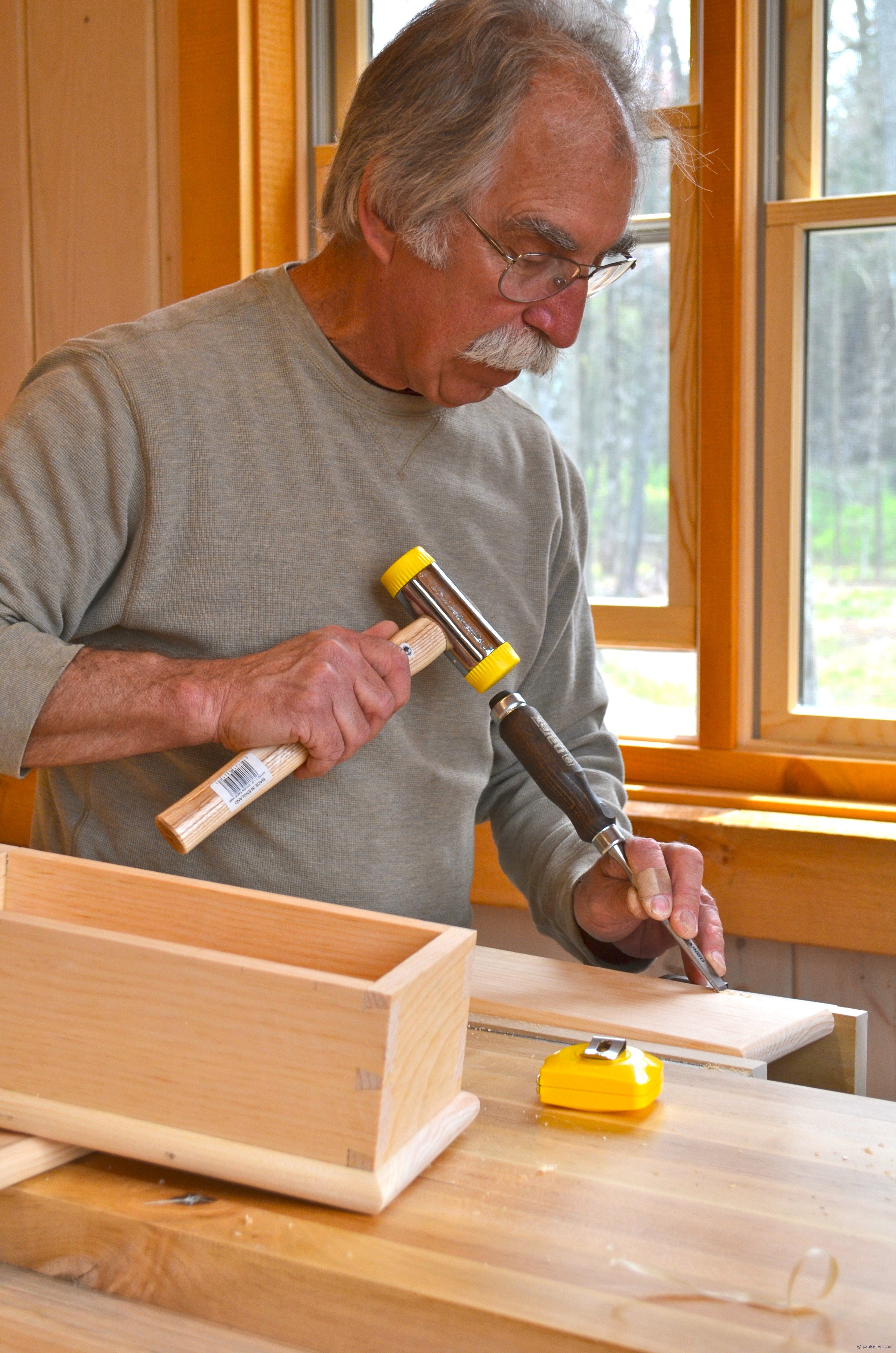 I have several wooden mallets I’ve made and used through the decade that I wouldn’t change for anything that are just great, I have seen silly little brass-headed chisel hammers some engineer thought we needed with short shafts that are imbalanced and cute. I hate cute. I posted in the past on my Thorex hammer and then found I couldn’t find them in the USA until a few weeks ago. What the secrecy was I don’t know. I found this hammer. It’s wonderful in the hand and gets the job done without an ounce of excess weight. I love it. Now that doesn’t mean it replaces all other mallets, but for under twenty bucks it gets new woodworkers started with something solid and without compromise. Other mallet types can come later. The name on the hammer is Vaughan and the place of origin at first glance is Illinois, but the hammer is actually made in the UK. This one is also made by Thorex, UK and aside from the wooden shaft it’s the same as the one I use. Mine is Nylon shafted and has nylon interchangeable heads. These heads tended to slip so I roughened the faces and they work perfectly well, but these yellow heads made for the US models are wonderful in that they don’t slip. A slip of white paper on the wooden shaft says made in England.