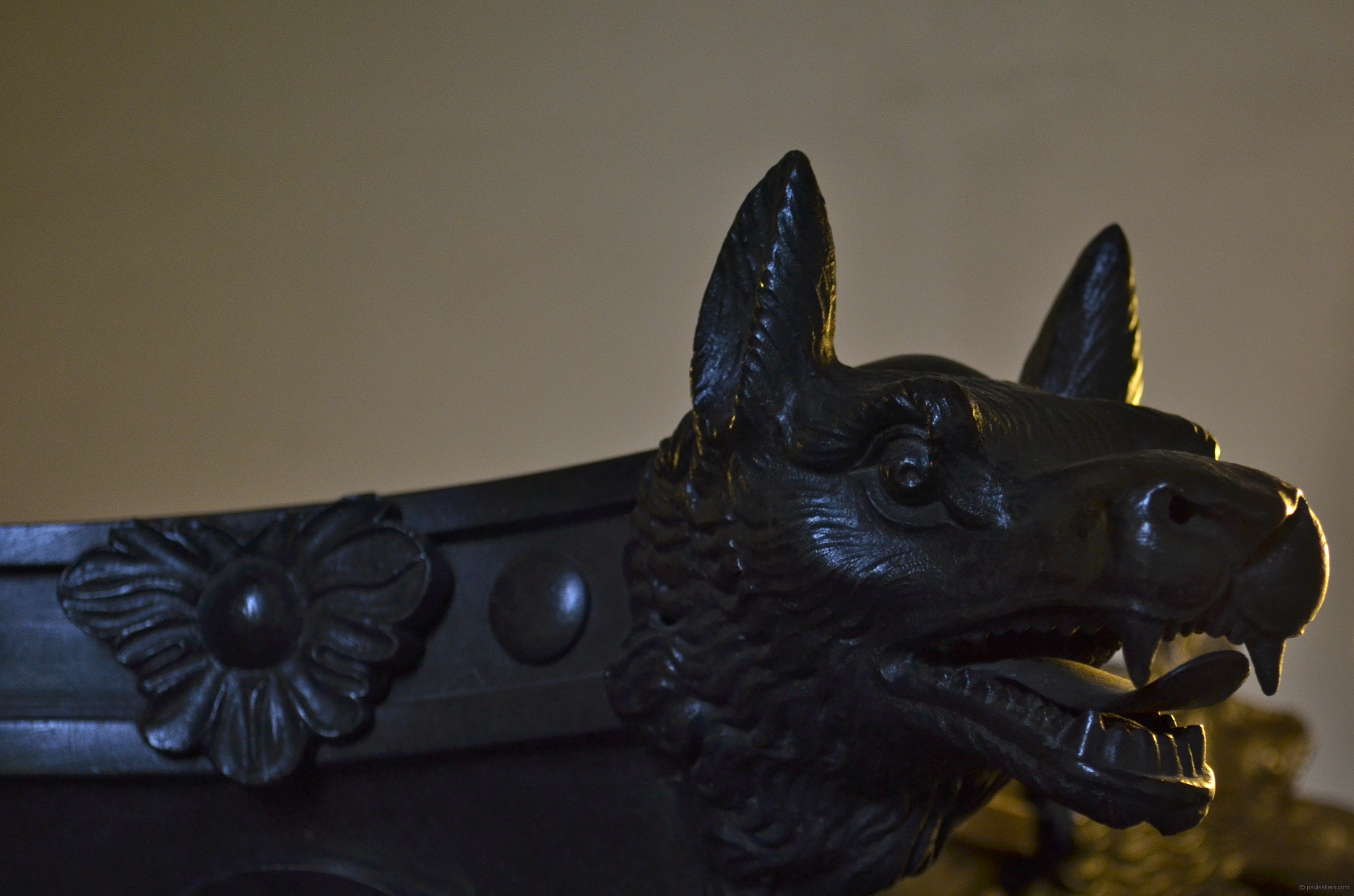 Dogs in carved wood for a lamp stand. This is a luminaire with three dogs set in triangular pattern with each head facing out towards three upturned lights; as you might expect with candle lighting. This carving has much movement and imminence of mood in its simple gouge cuts. So many carvings I have seen look, well, wooden. This one doesn’t at all. A very important projection pending defence is captured and expressed by the artist who was never known as an artist in his day.