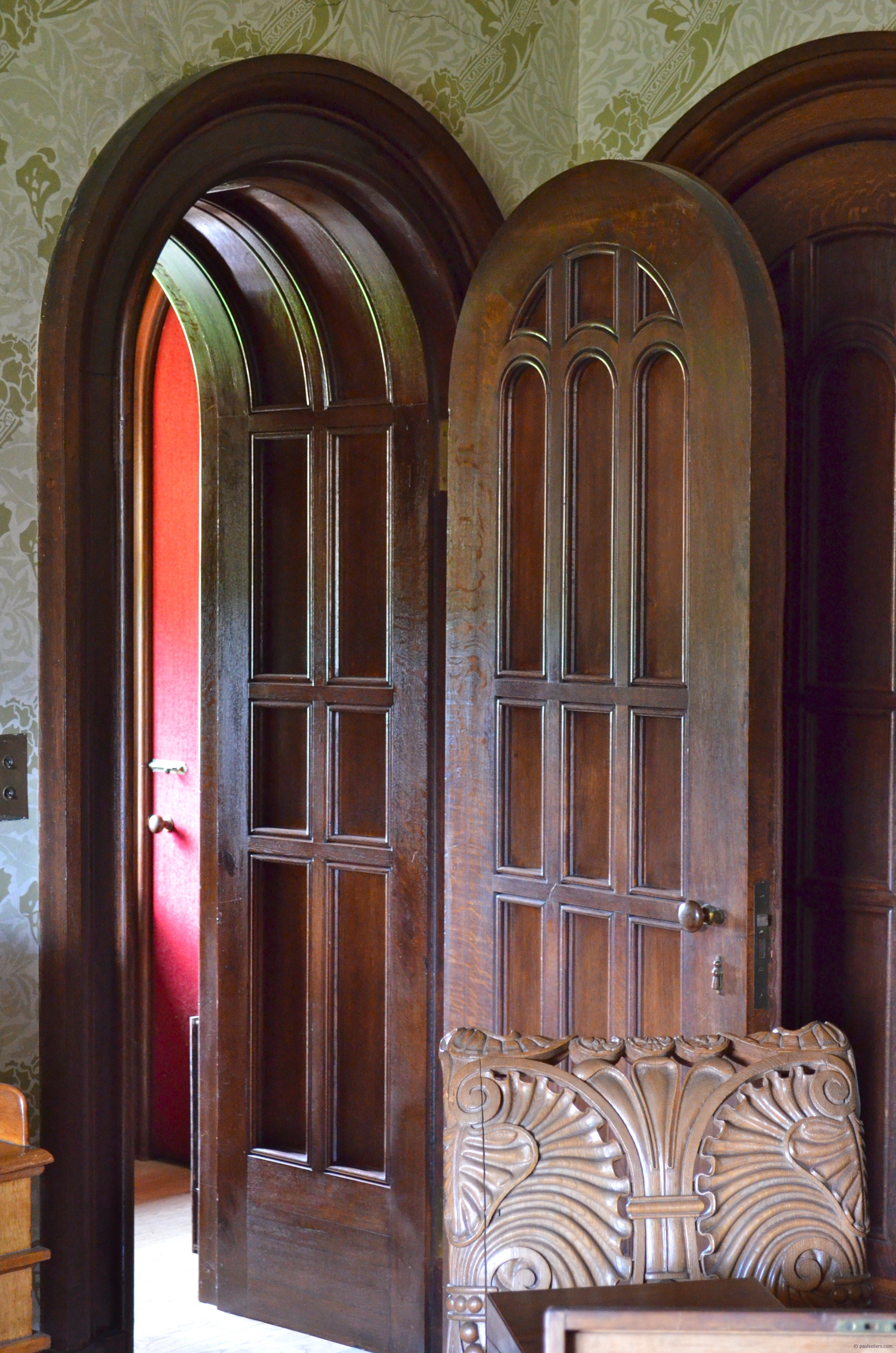 Try not to look solely at the door but the arched frame necessary to span two-foot thick, solid stone dividing walls. Now think about that first and then think about 2x4 stud walls with 3/8” sheetrock each side. This doorway exemplifies the fine skills of the joiner from an age when such quality defied the age of the machine. This joiner worked at a pine joiner’s workbench hand planing English or possibly Welsh oak in preparation for cutting and shaping joints with shoulder lines so perfect the arched joint-lines are barely discernible. The arched head of the door and the framed frame is replicated in the triple arches that are just lovely. The reason all of this is so lovely is because it was made by a man who loved his work.