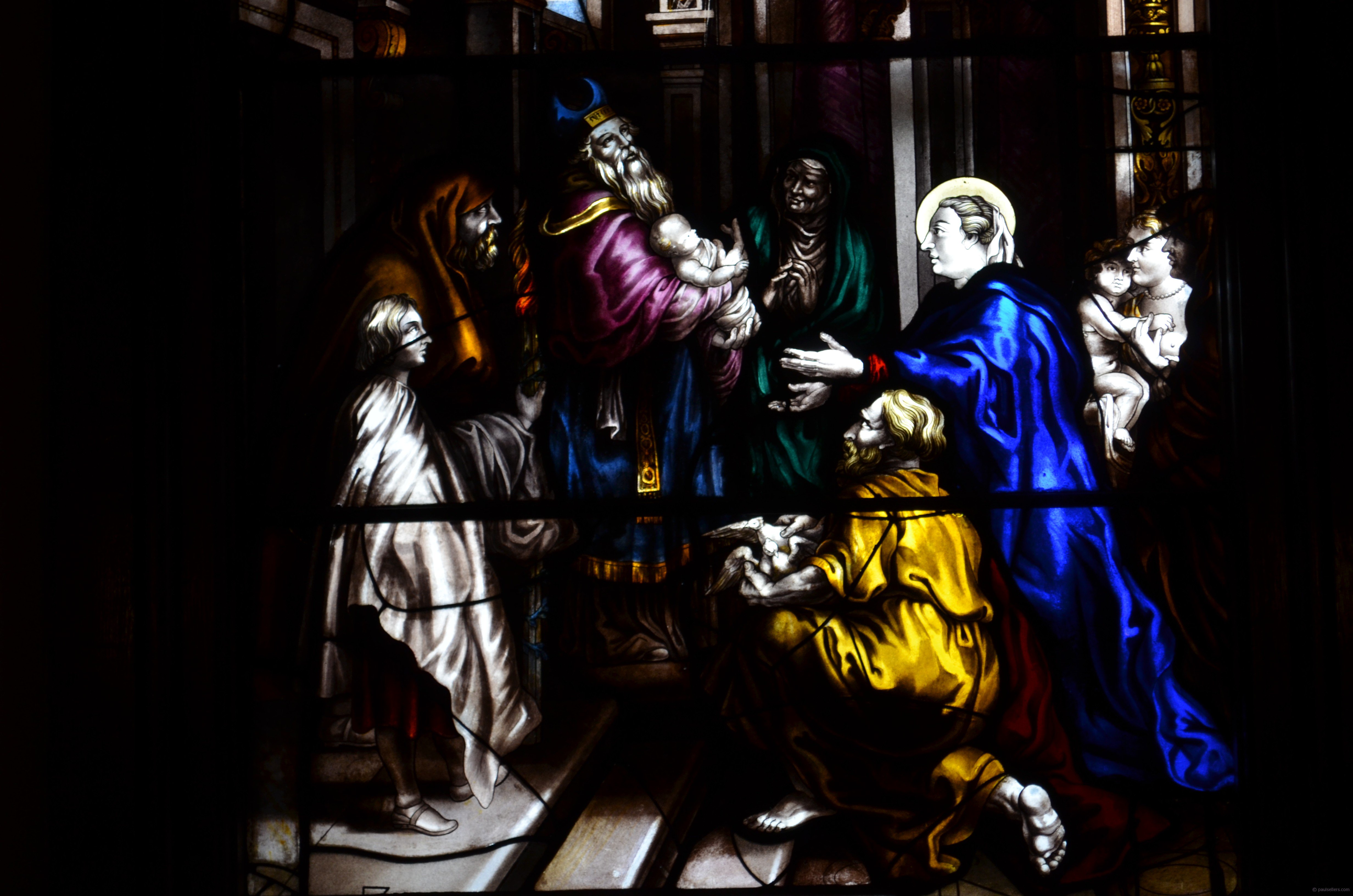 Stained glasswork forms the window panels, but just look at the vivid blues and yellows and purples.